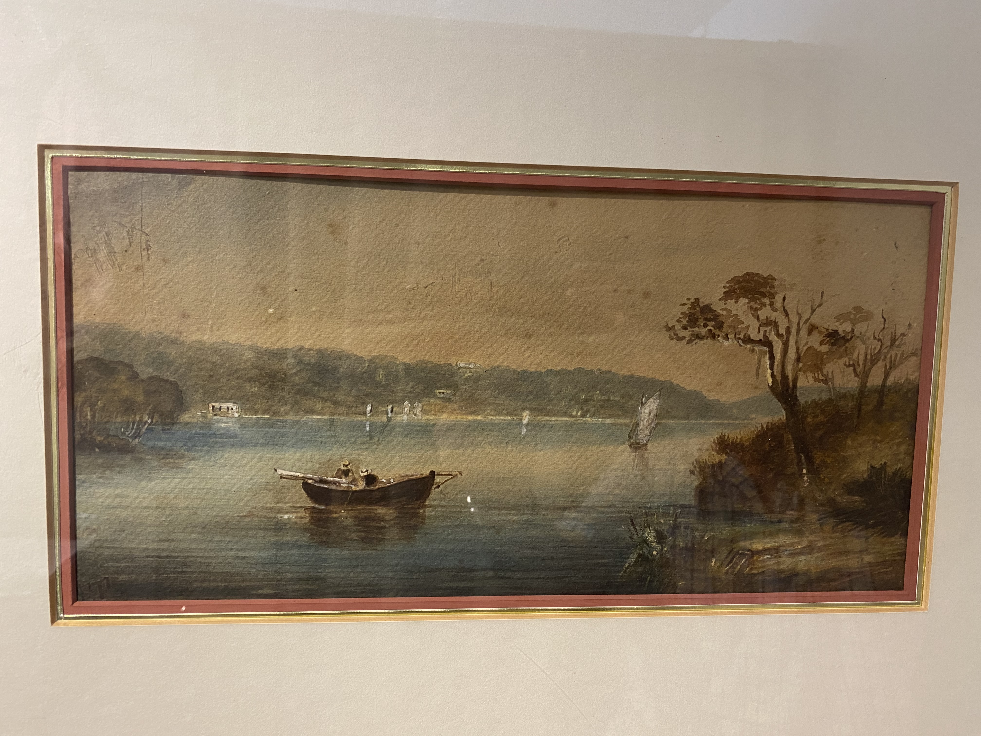 Old Watercolour of a boating scene, possibly Sydney, Australia.