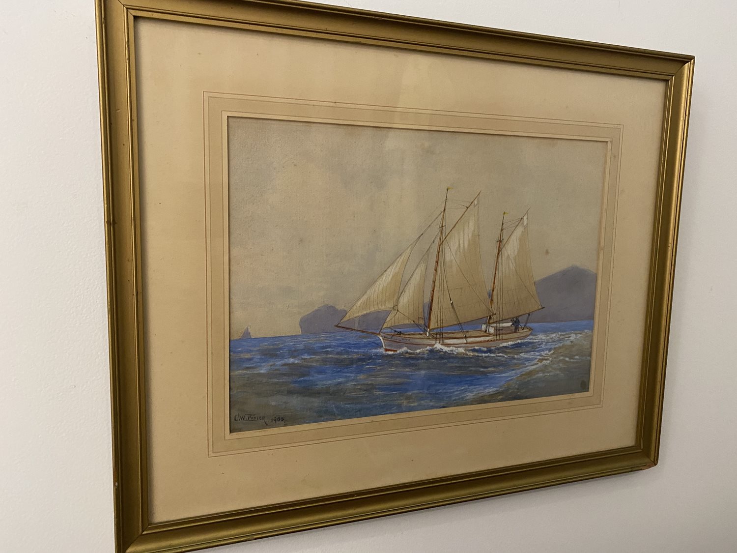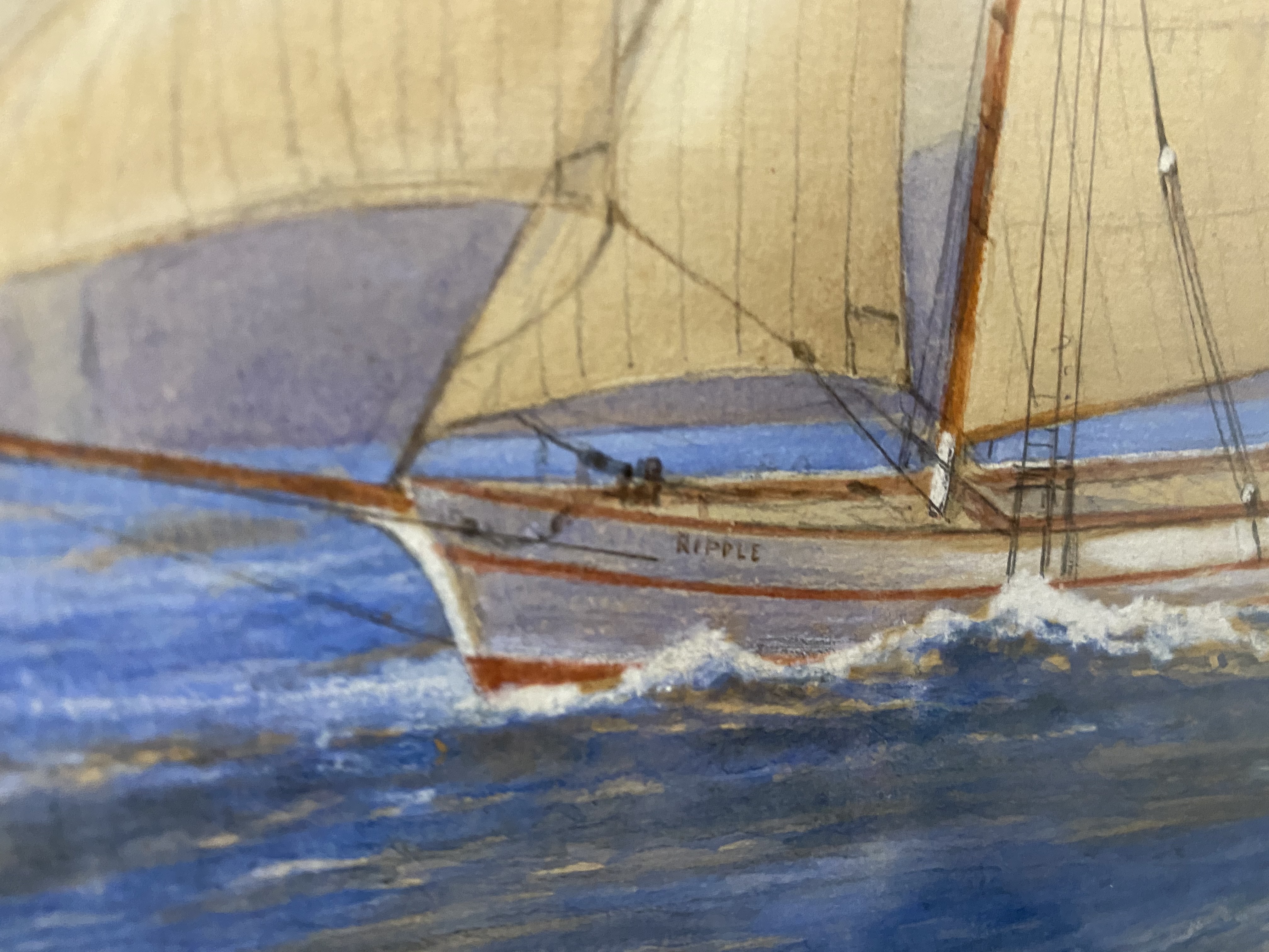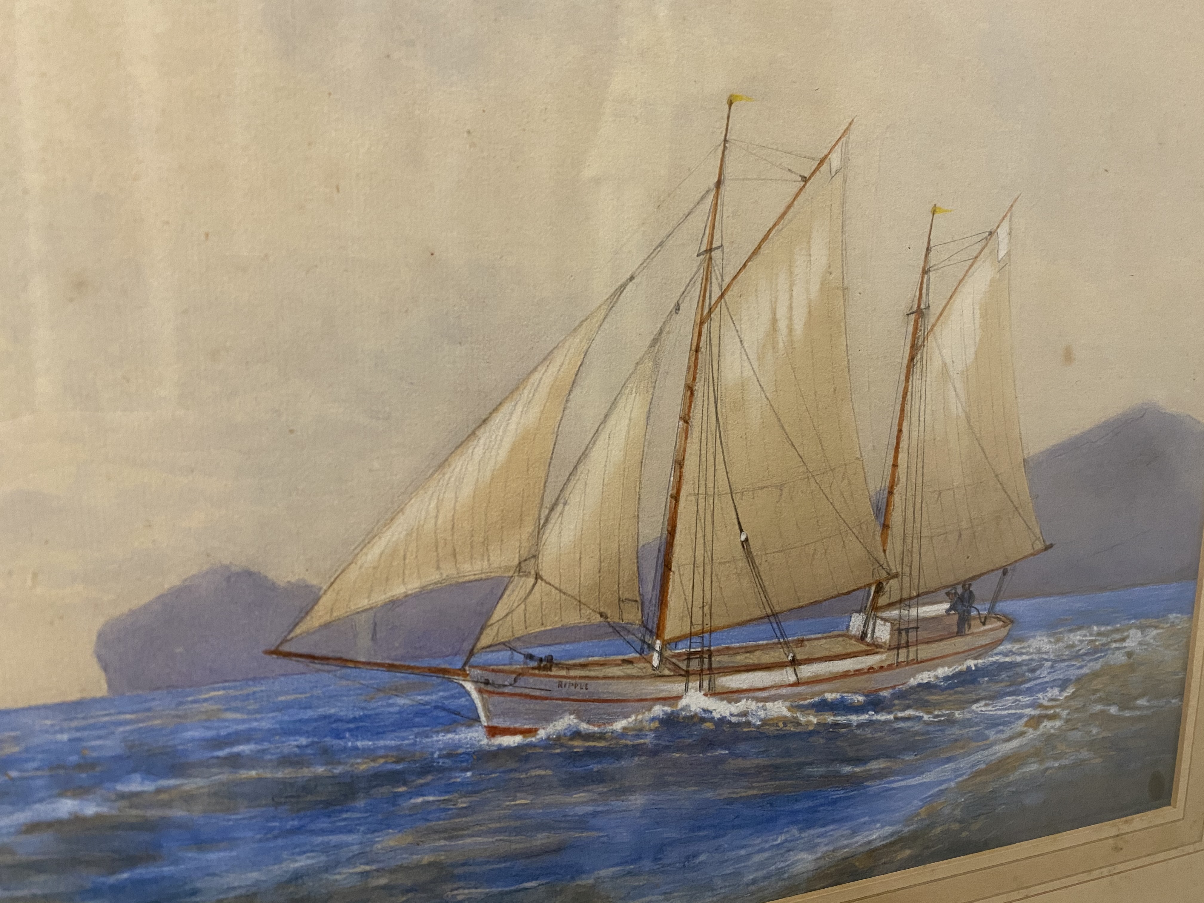 The ketch 'Ripple' off Cape Brett, watercolour, signed and dated 1905.