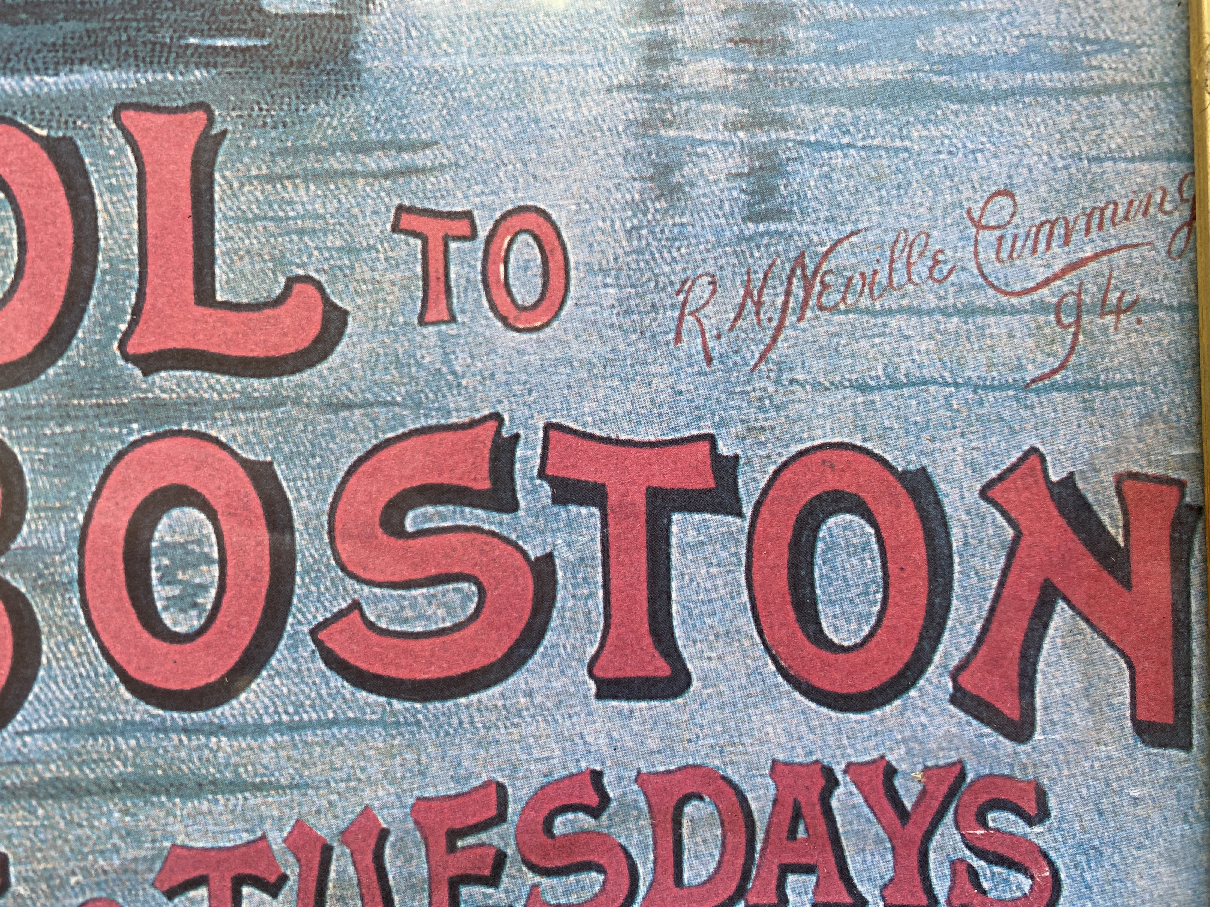 Reads; "Cunard Line. Royal Mail Steamers. 5 1/3 days across the Atlantic.
