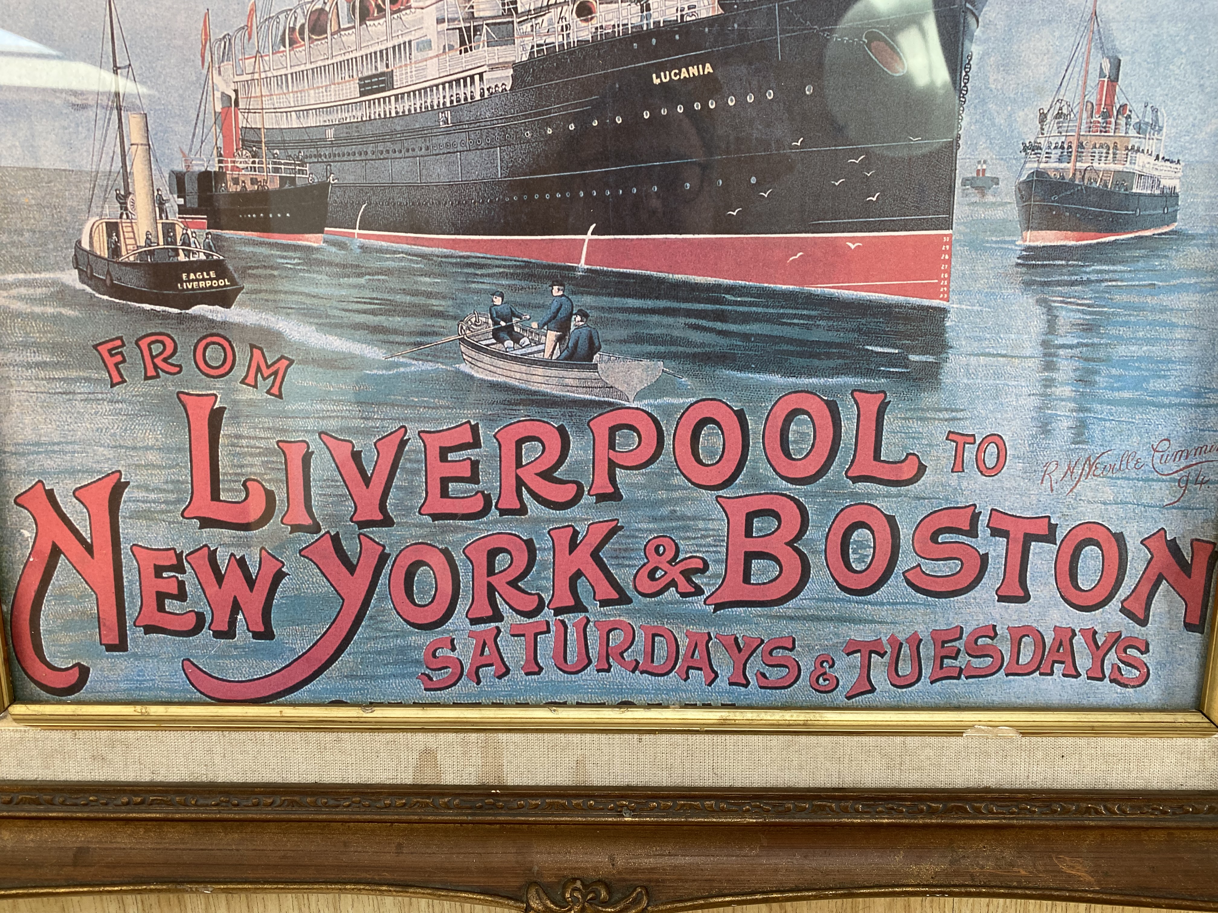 Antique Cunard Advertising Poster in a gilt frame. Shows the ship Lucania.