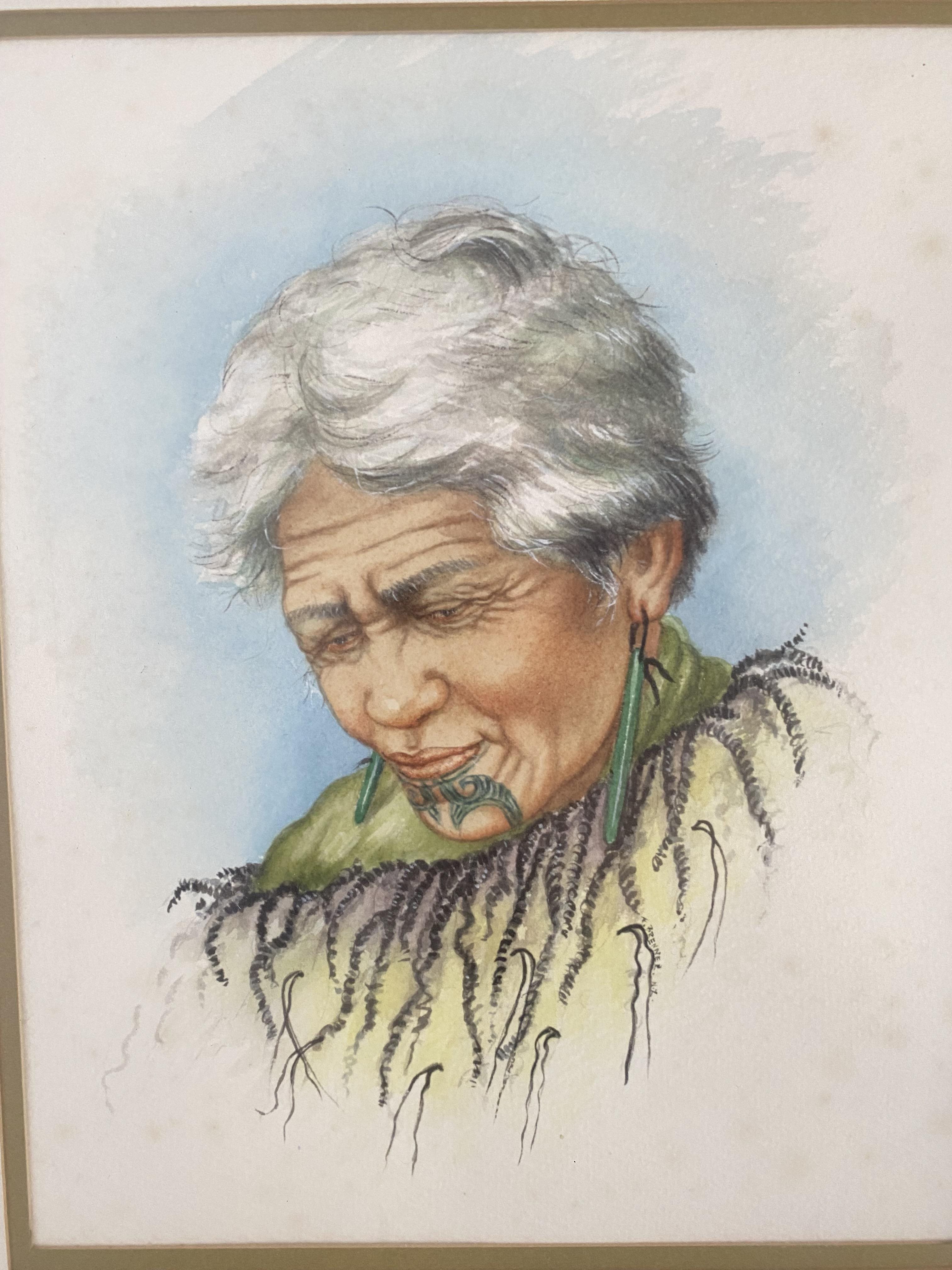 Fernanda Brenner, (1924-2005), was an Italian born New Zealand Artist who was known for her Maori Portraits, some her own compositions whilst others were copies of Goldie's. At 12 years old she was awarded a scholarship to study painting at the Academy of Fine Arts in Venice and migrated to N.Z in 1951. She became a member of the New Zealand Acadamy of Arts and taught painting. She also had numerous exhibitions in Wellington.