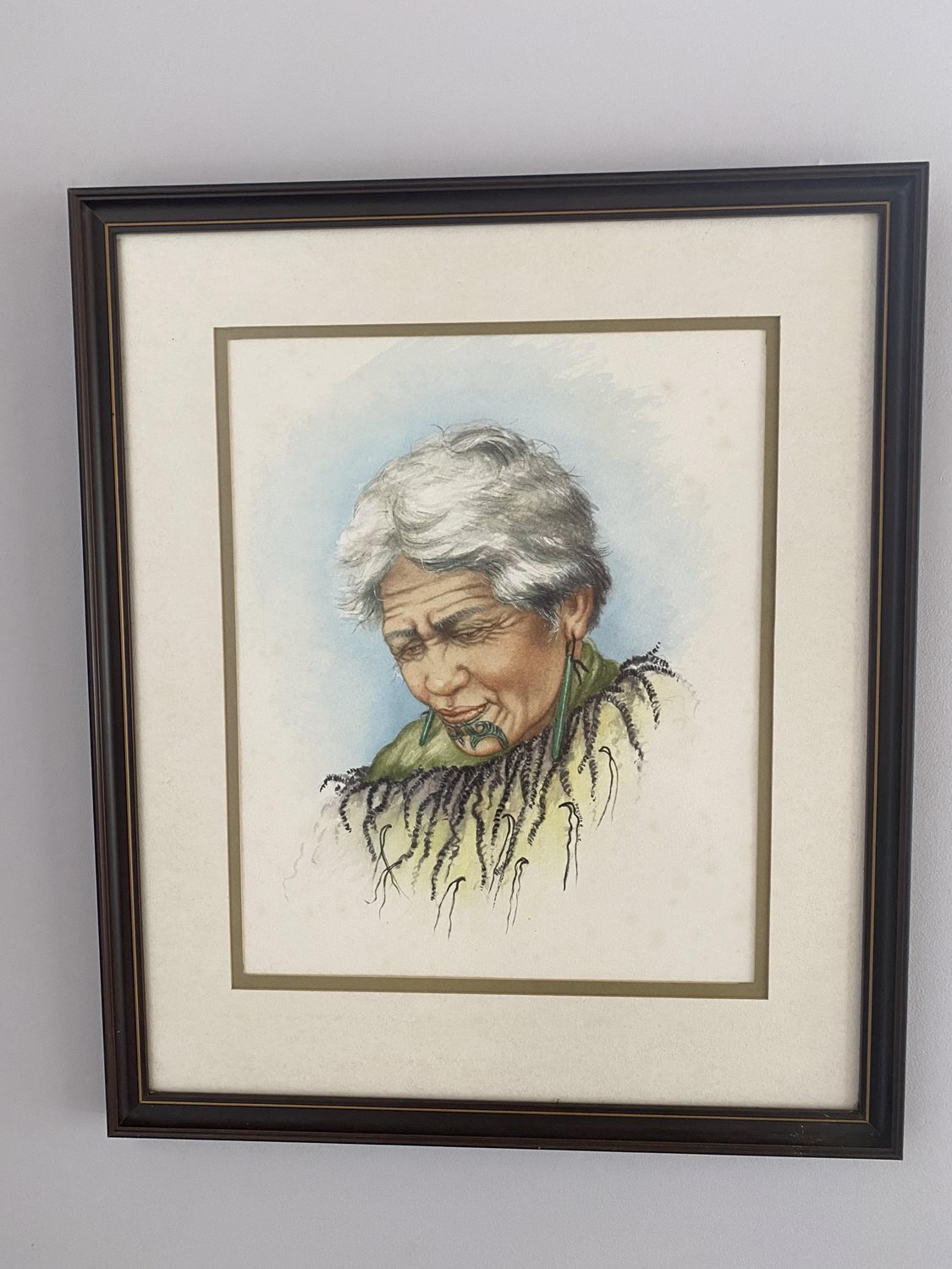 This watercolour shows a Maori Woman with Moko Kauae.