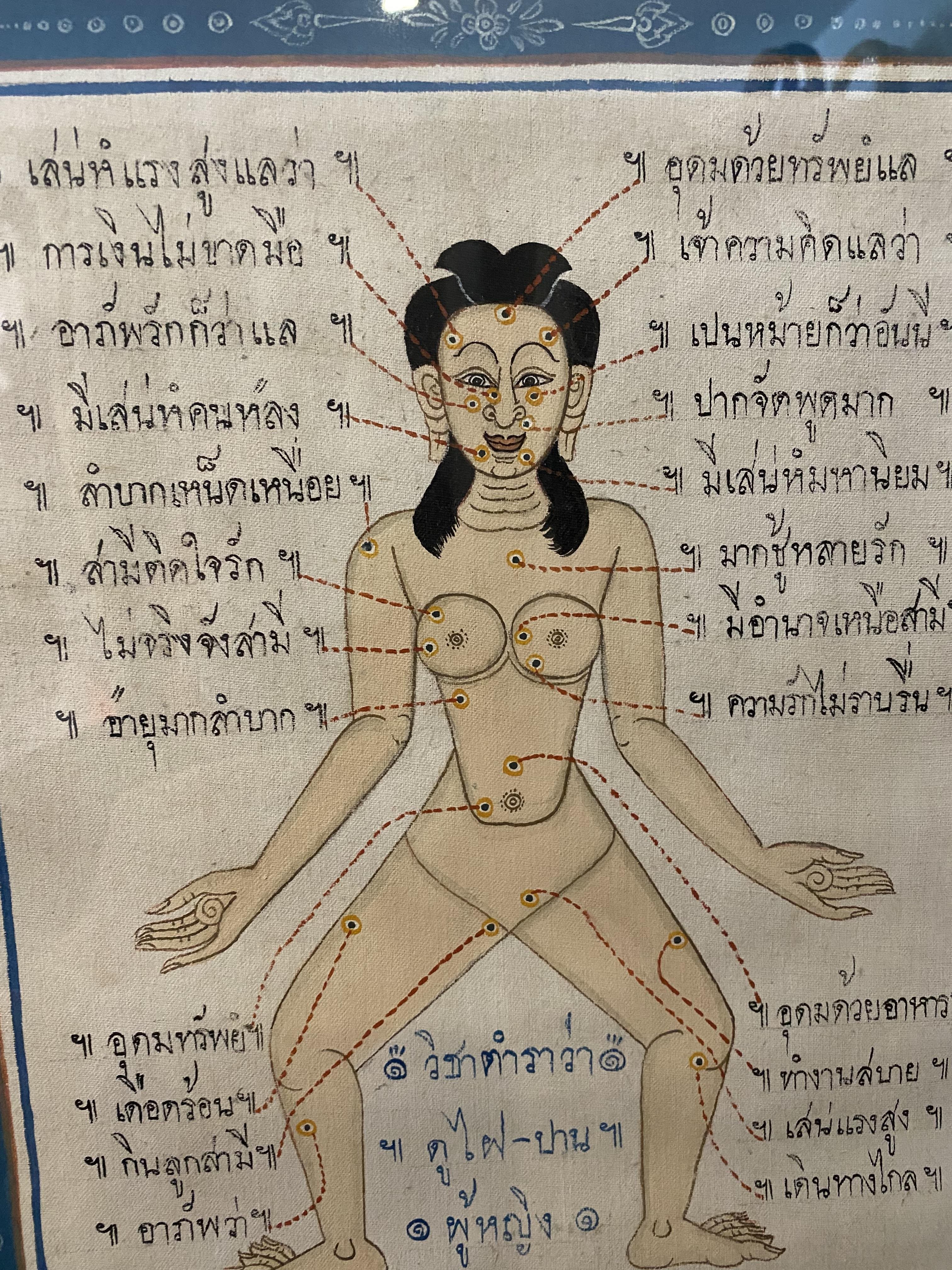 Hand painted on linen, this pair of Tibetan Medical Charts are very decorative and professionally framed. Chakra means wheel and refers to the energy centres which occur at the junction of the three nadis. There are seven Chakras generally recognised with five of these regarded as especially significant.