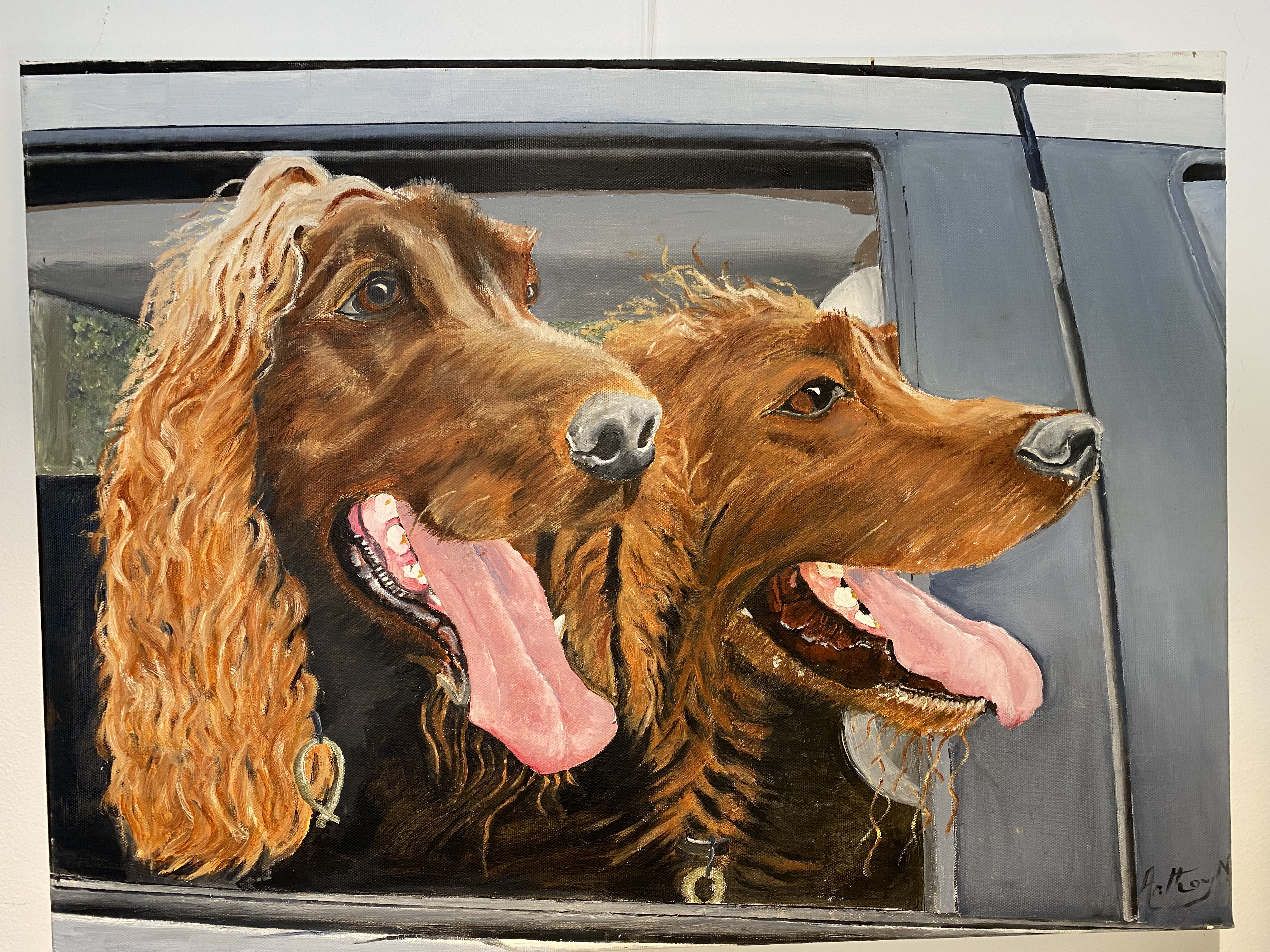 This is a very attractive and well executed oil of a pair of Irish Setters.