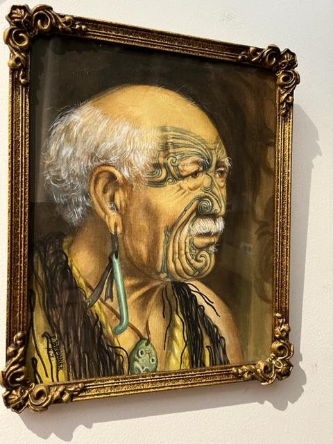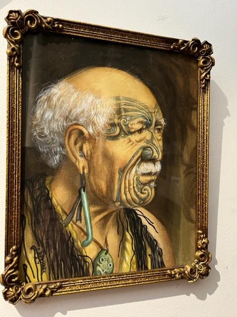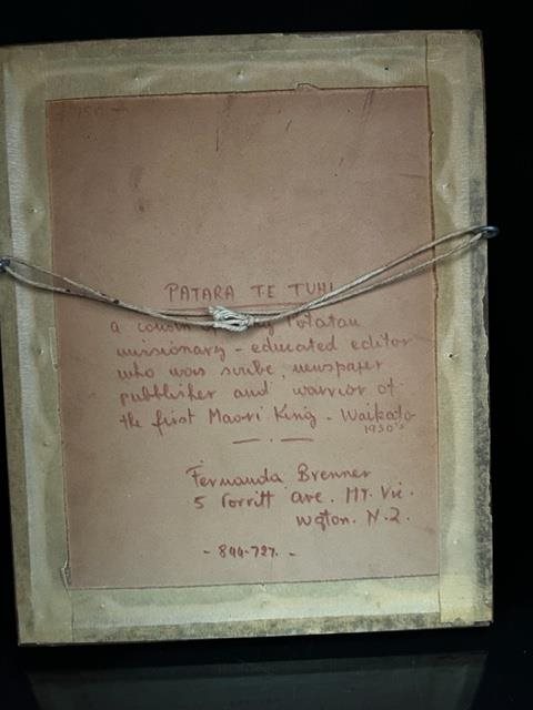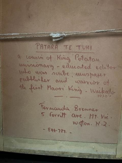 Hand-painted Watercolour Portrait of Patara Te Tuhi by Fern Brenner. Signed verso with additional text : "a cousin of King Putatau missionary - educated editor who was scribe, newspaper publisher and warrior of the first Maori King - Waikato 1930's.