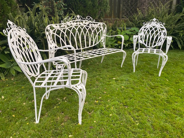 These sets are getting harder to find and are a great addition to a grand garden. Seat Cushions would need to be made but this gives you the opportunity to choose the fabric and colours to suit your aesthetic.