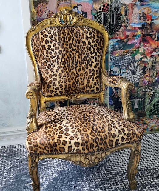 Stunning pair of Antique French Open Armchairs, Circa 1880. Giltwood with new Italian Leopard Print upholstery.