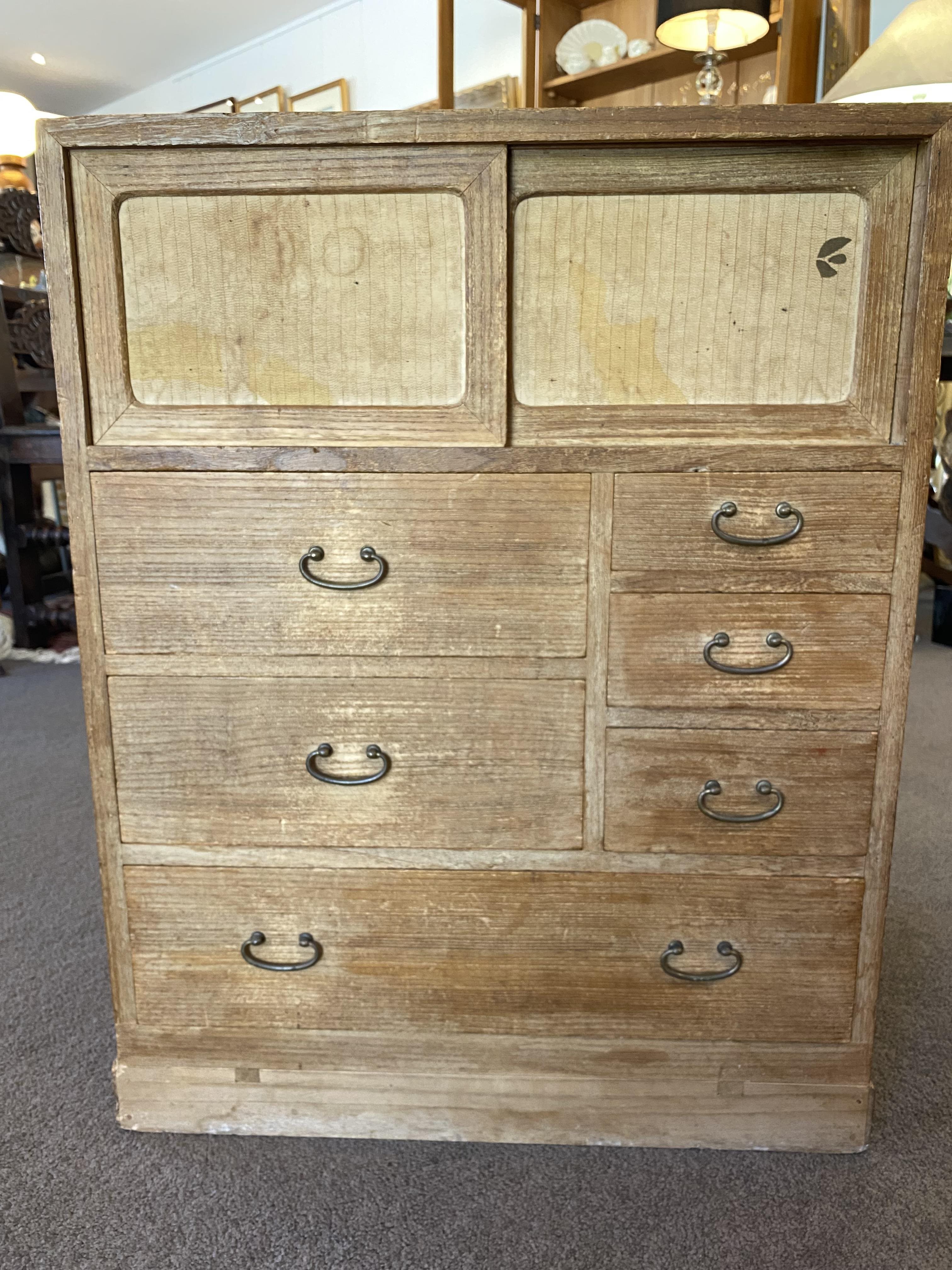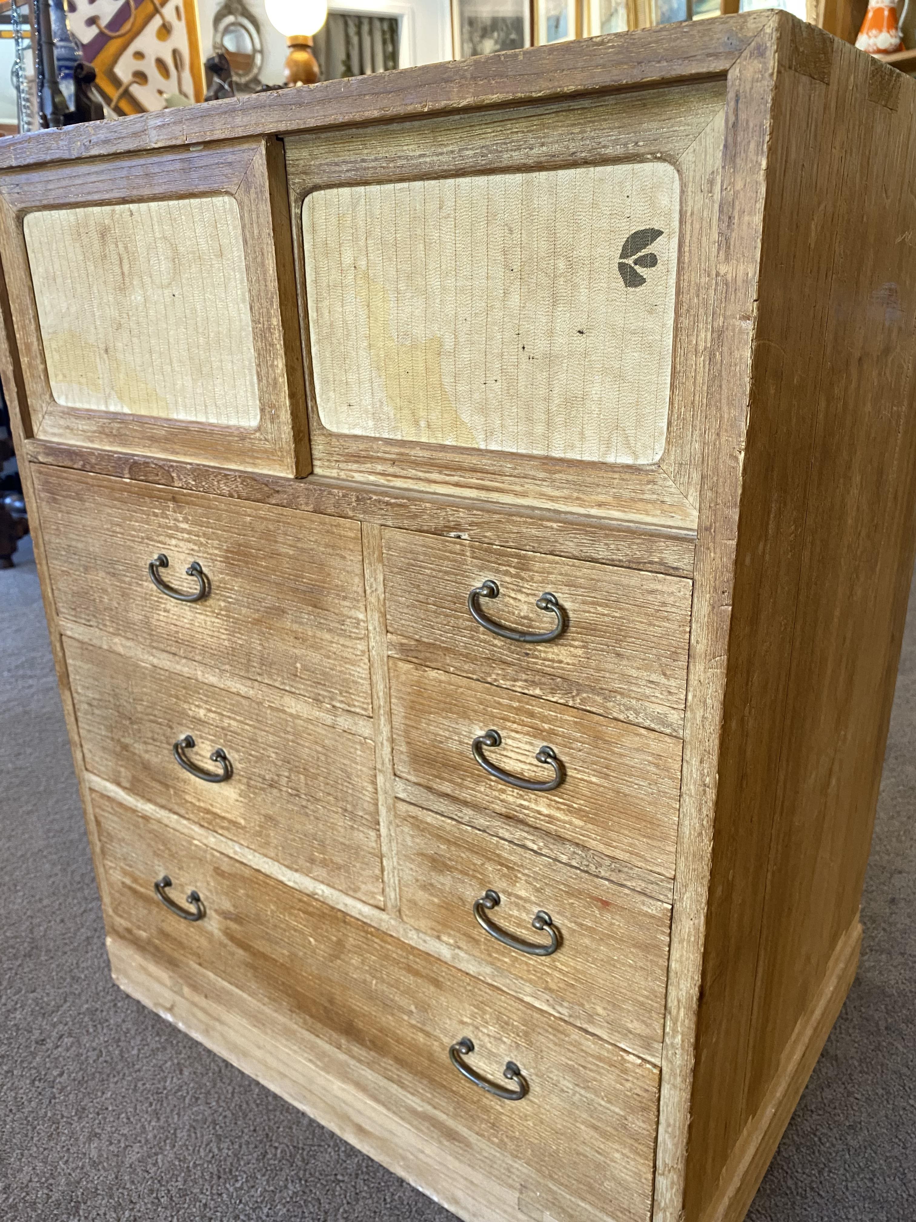 This beautiful little chest is a delicately made example of early Japanese craftmanship. In lovely original condition, this well proportioned piece has six drawers and two small sliding doors.