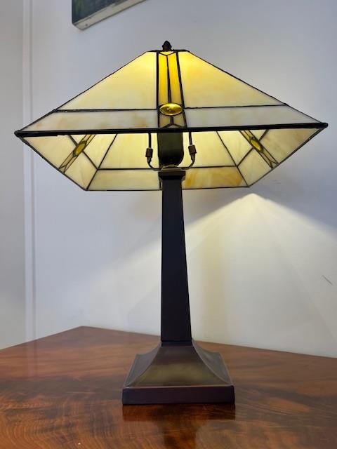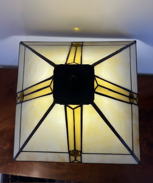 A modern reproduction of the iconic lamp, defined by the coloured lead light shade and metal base. The originals are hard to come by and extremely expensive. Originally designed by Louis Comfort Tiffany between 1890 and 1930, hence the name. This one is in the Art Deco style of the 1920'- 30's.