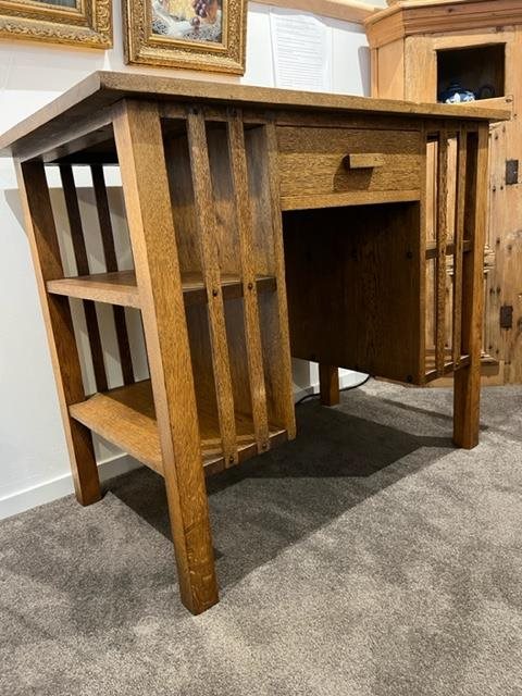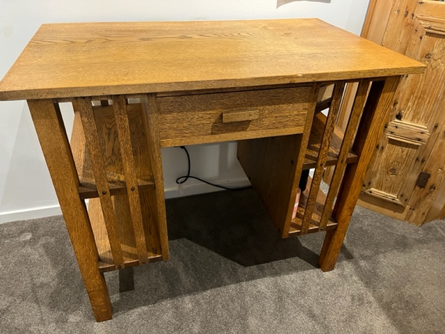 This is an attractive and well proportioned vintage desk with book cases at either end and a single drawer. Solidly built and in great condition.