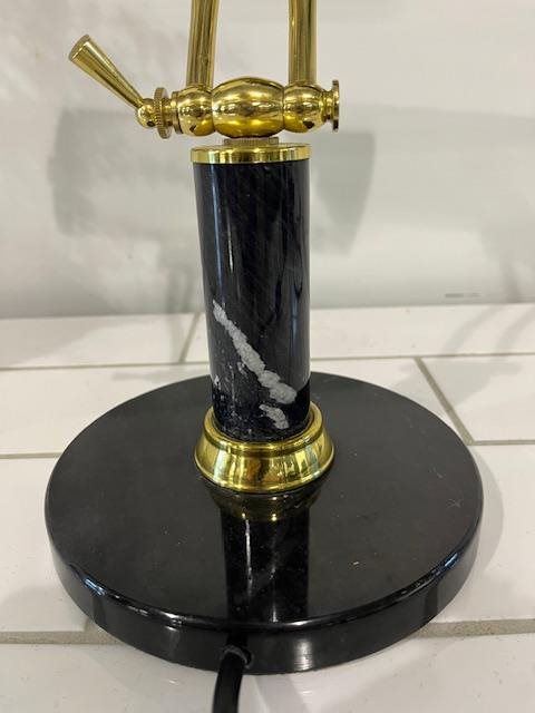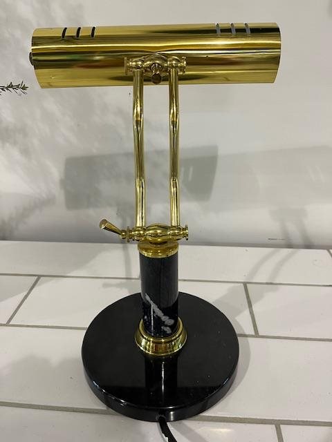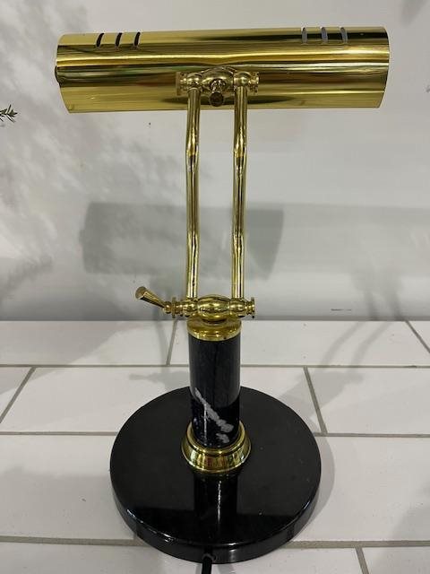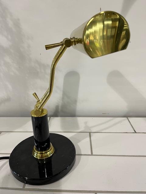 Very good quality reproduction bankers lamp. Brass with marble. Adjustable.