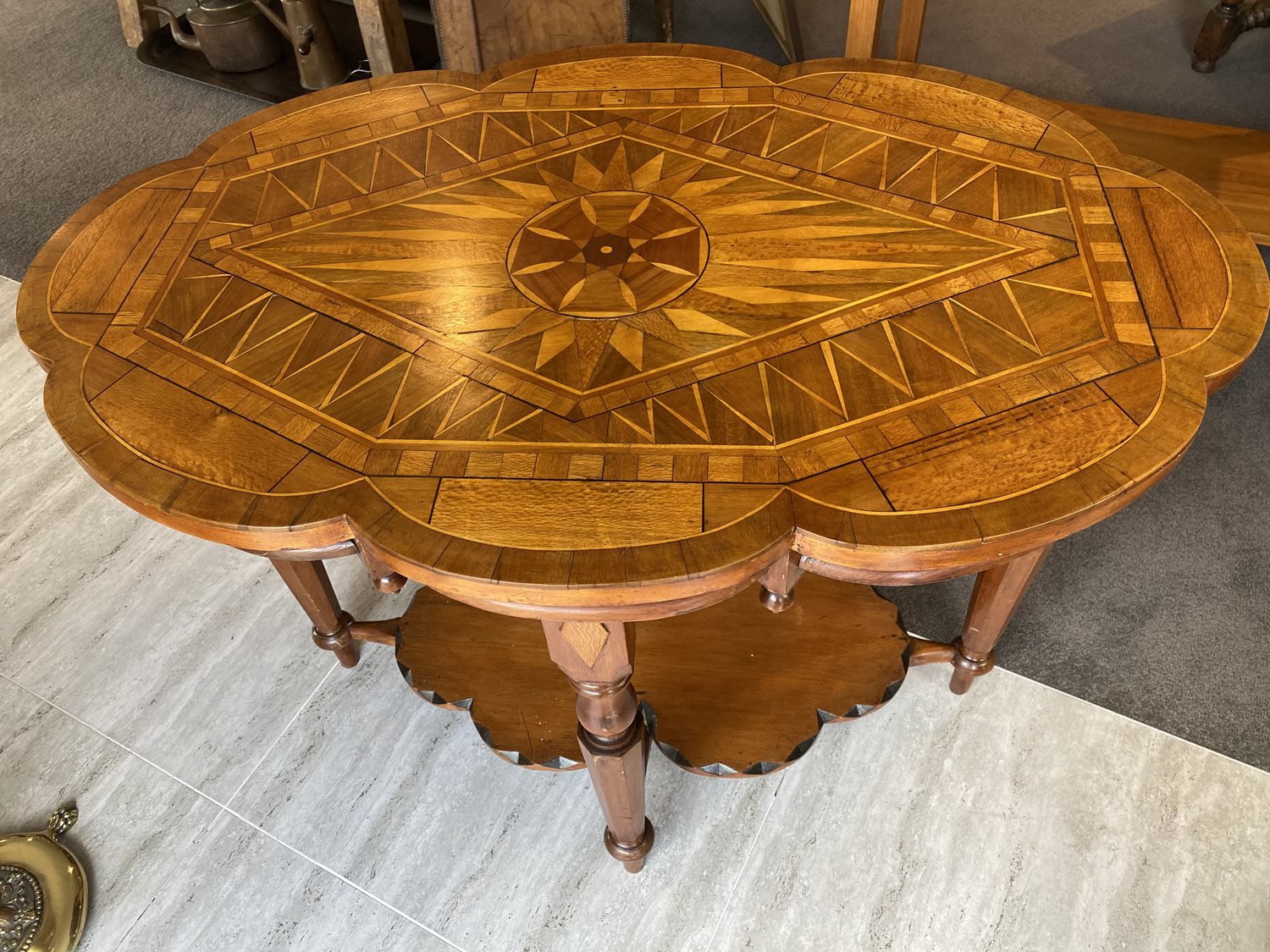 Spectacular parquetry table from the early 20th century.