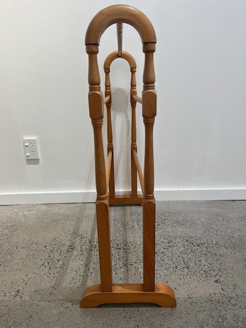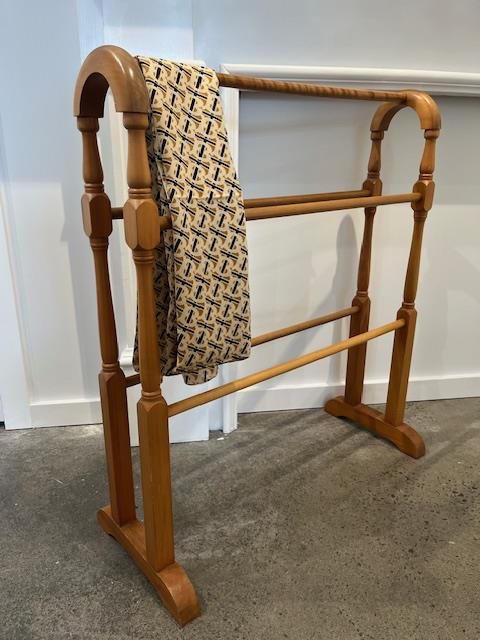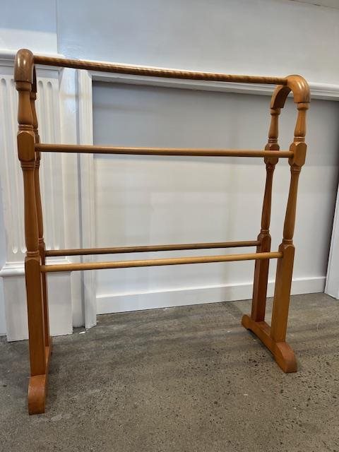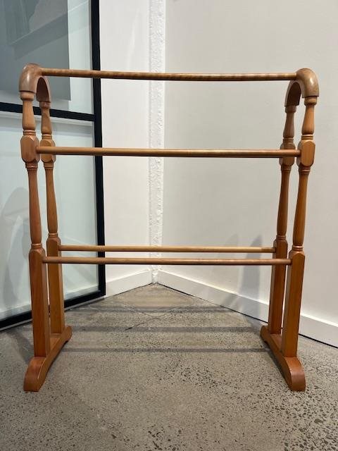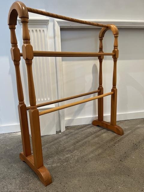 This is a lovely old wooden towel rack with 5 cross-bars