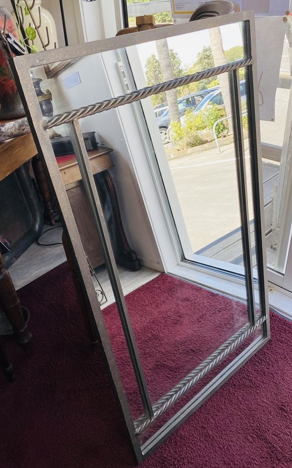 Very heavy and well constructed contemporary metal framed wall mirror.