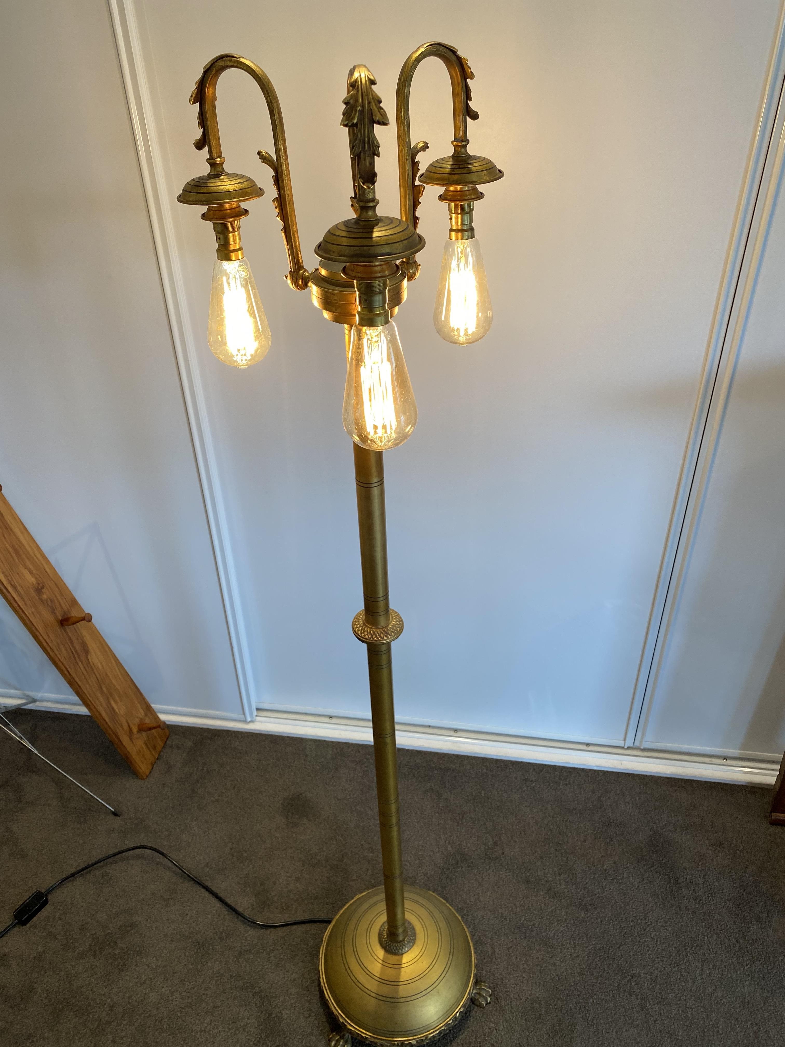 Lovely neo-classical detail on the base and column of this standard lamp from early to mid 19th century.