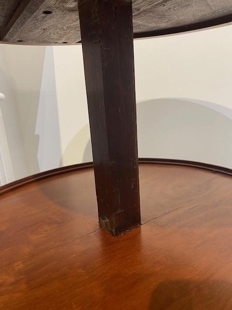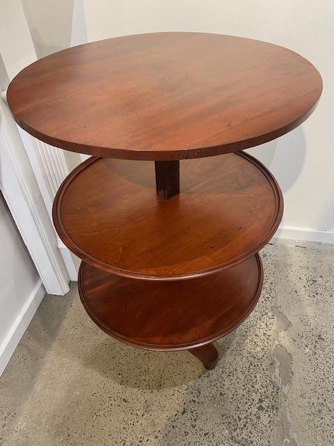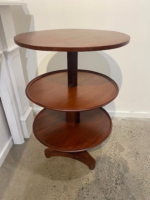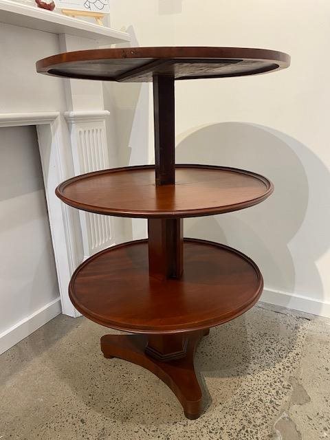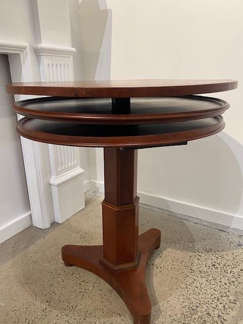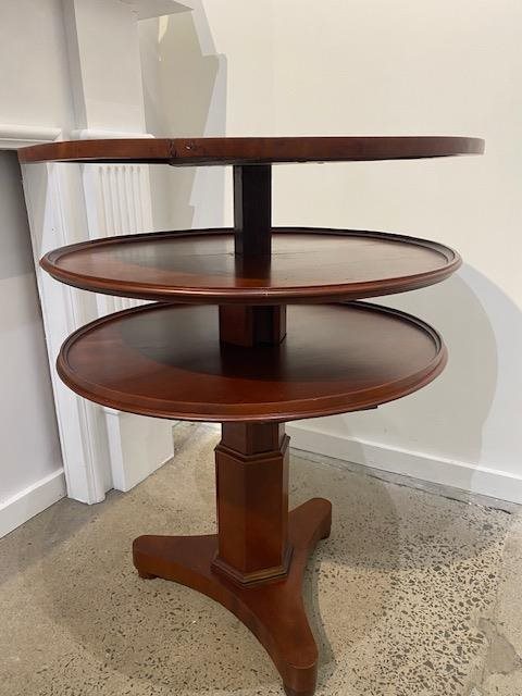 The top rises to reveal two further trays, raised on hexagonal column and tripod base H.680mm (closed) 960mm (expanded), 635mm dia.