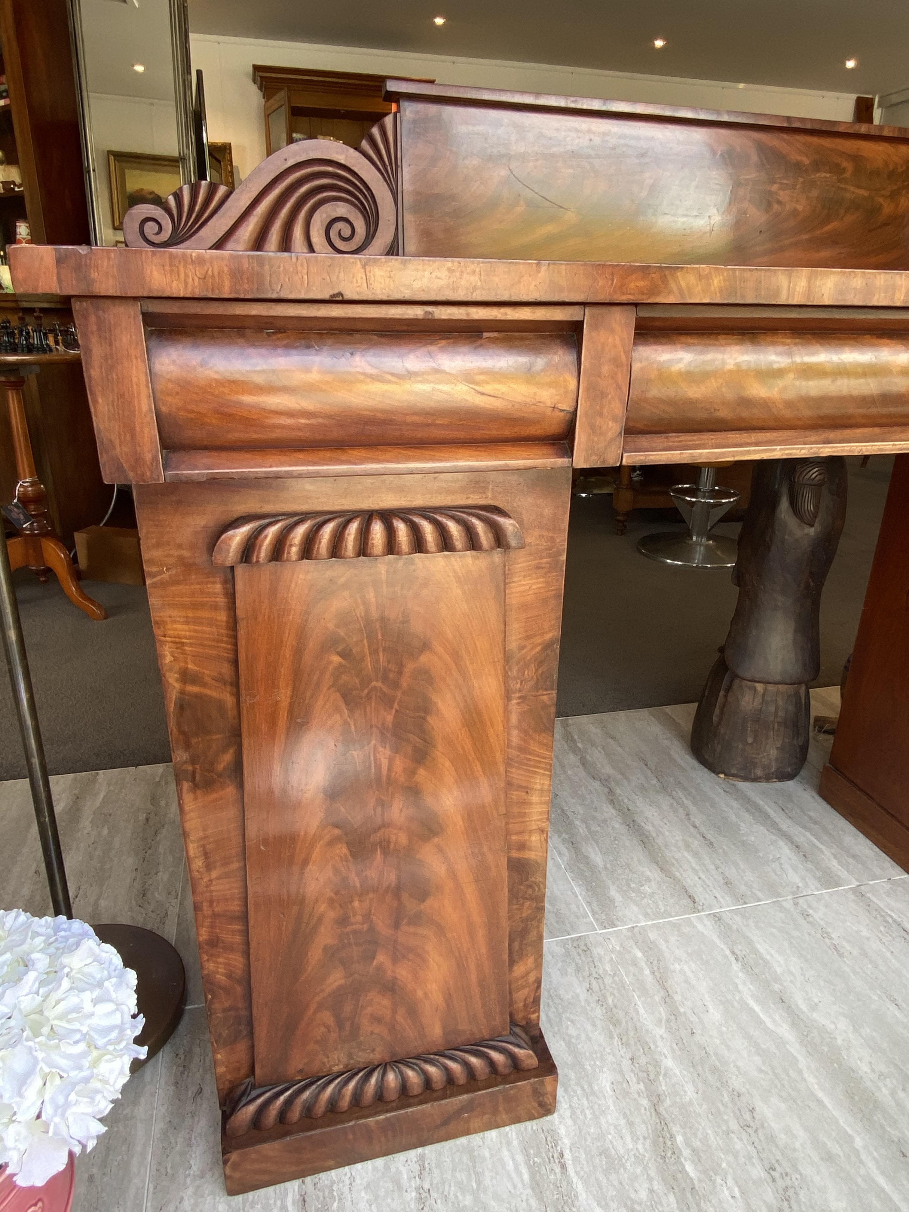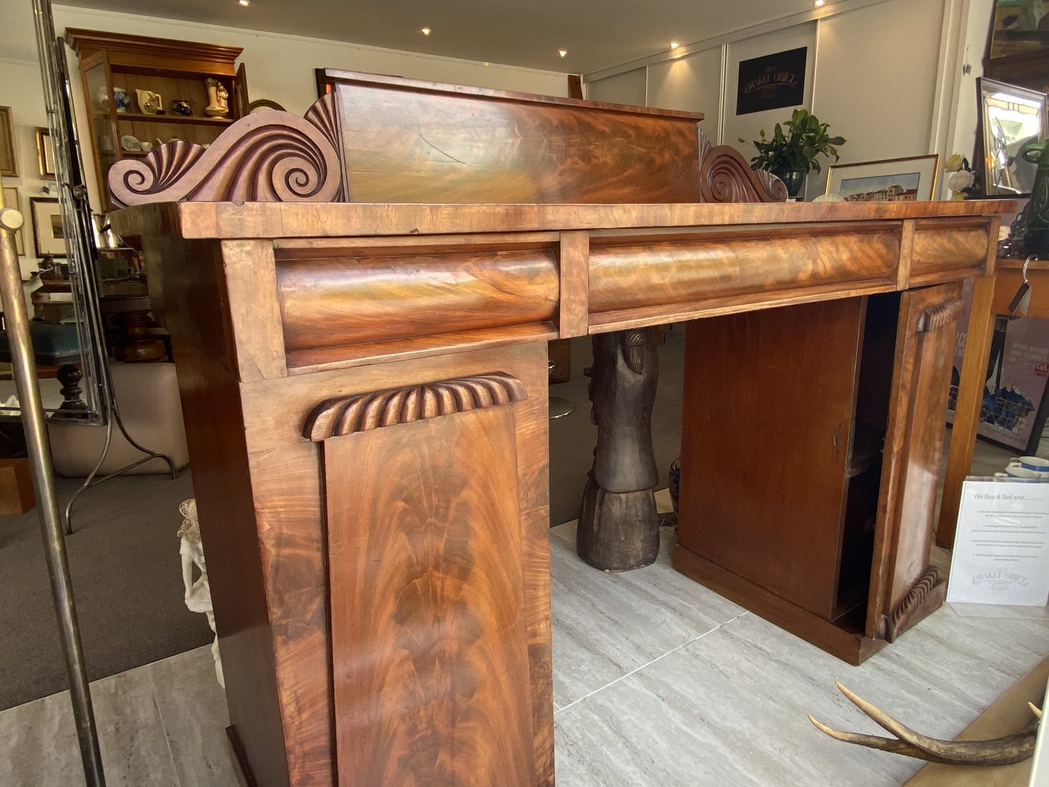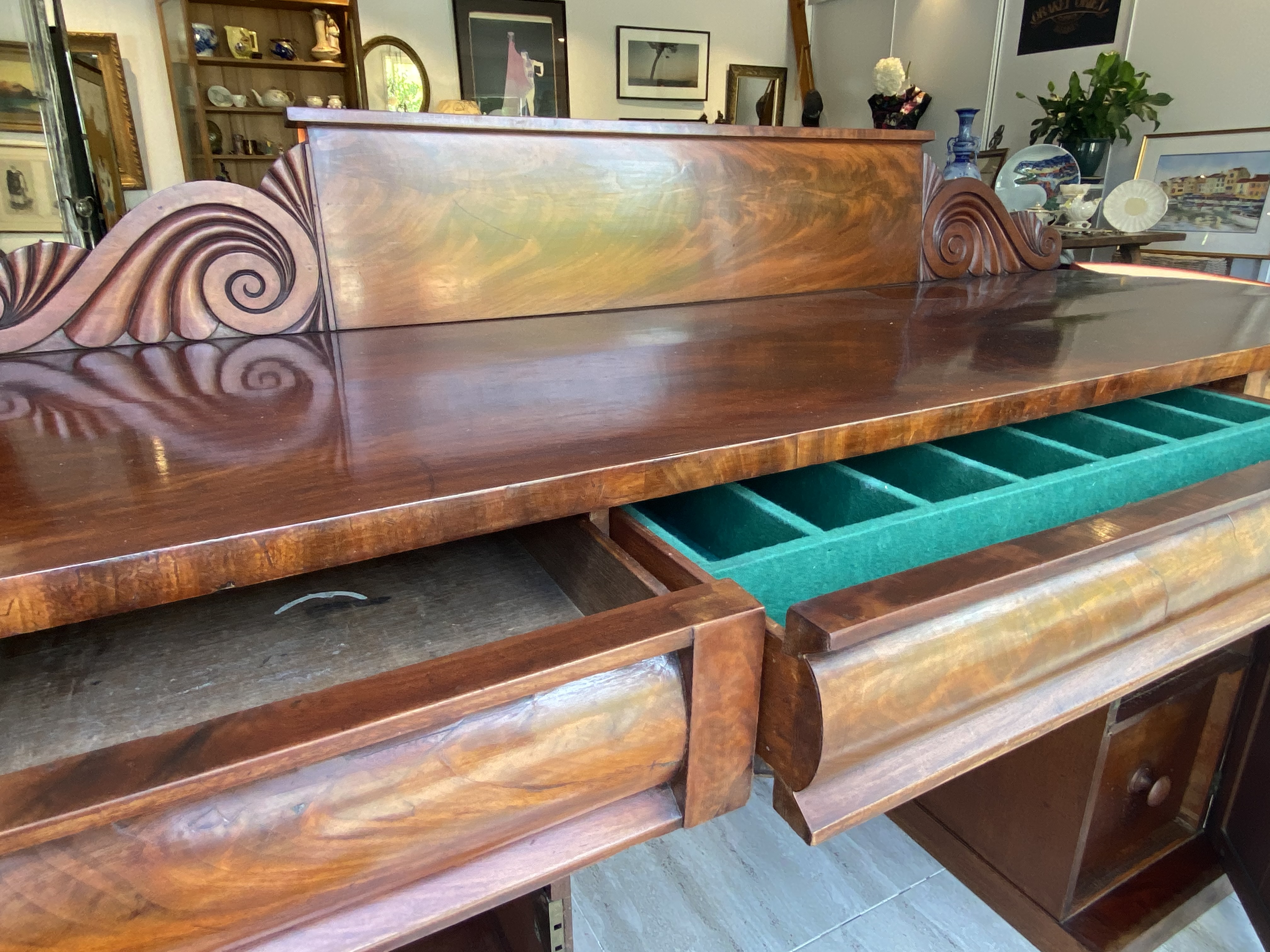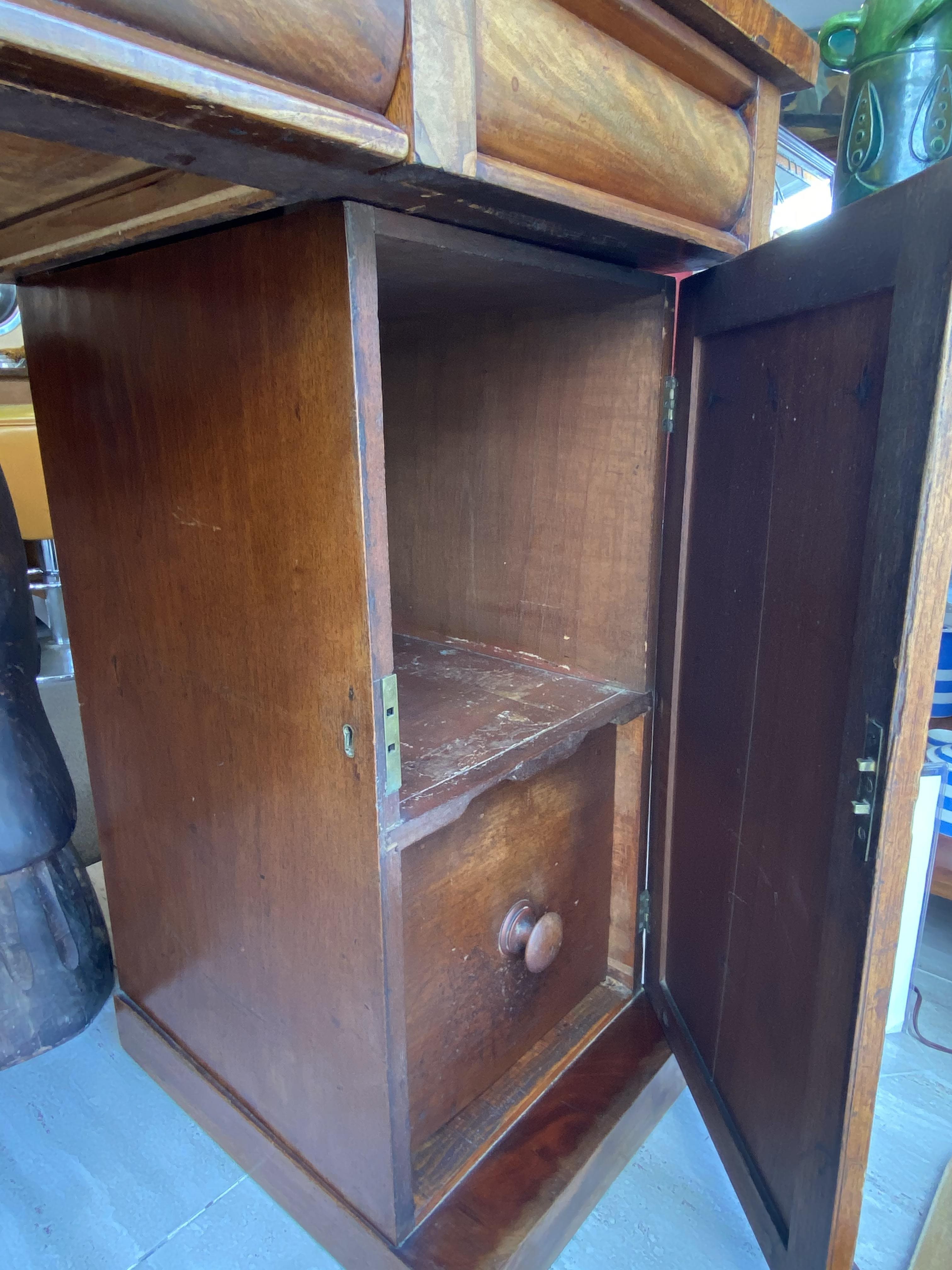 2 cupboards in each pedestal and 3 top drawers including baize lined cutlery drawer.