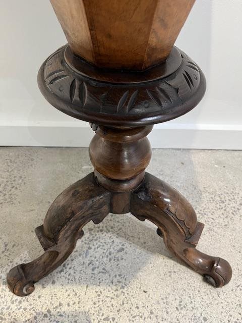 Ornately carved bas with an octagonal top. Stands 695 mm high and the table width is 450 mm