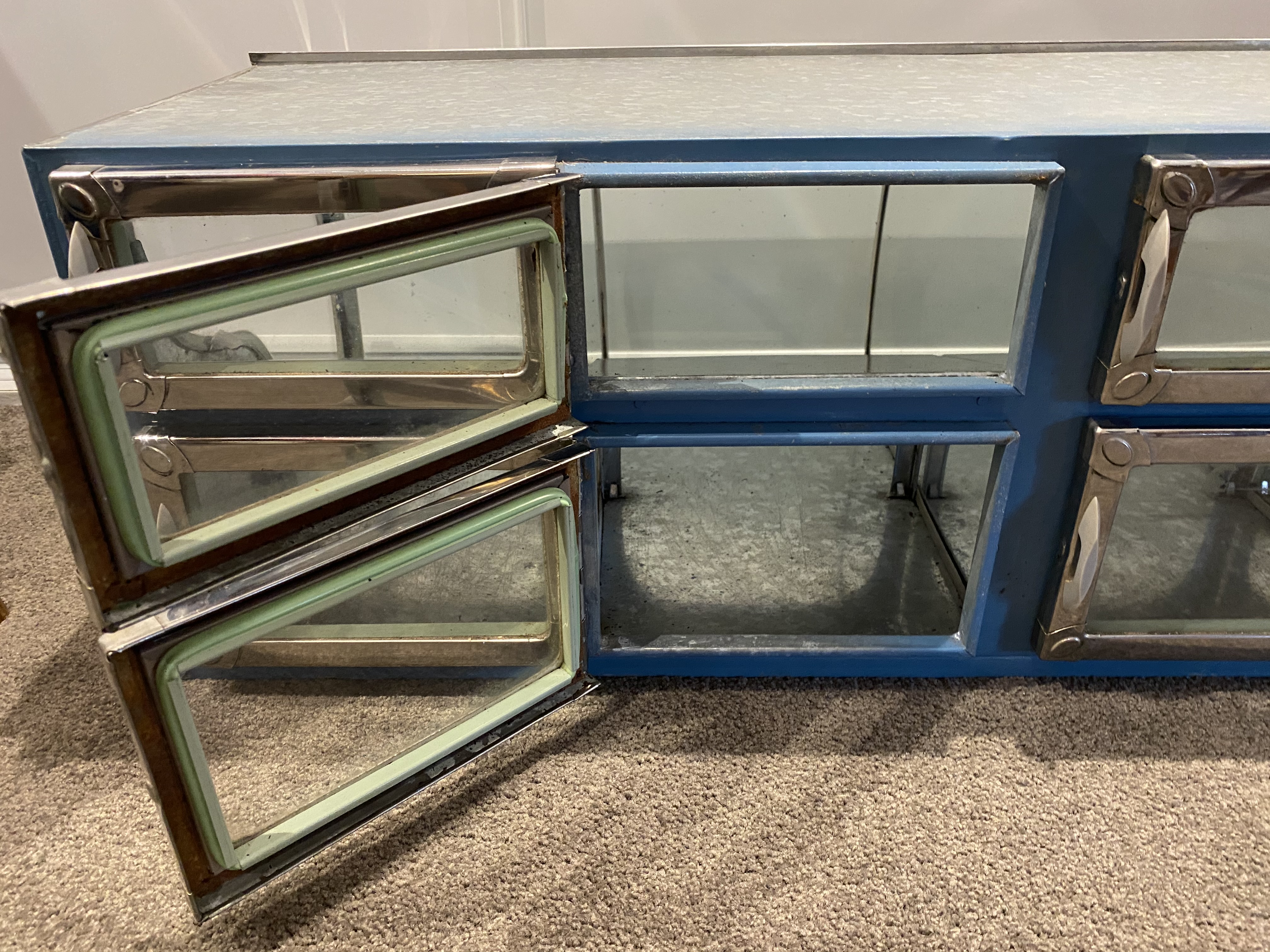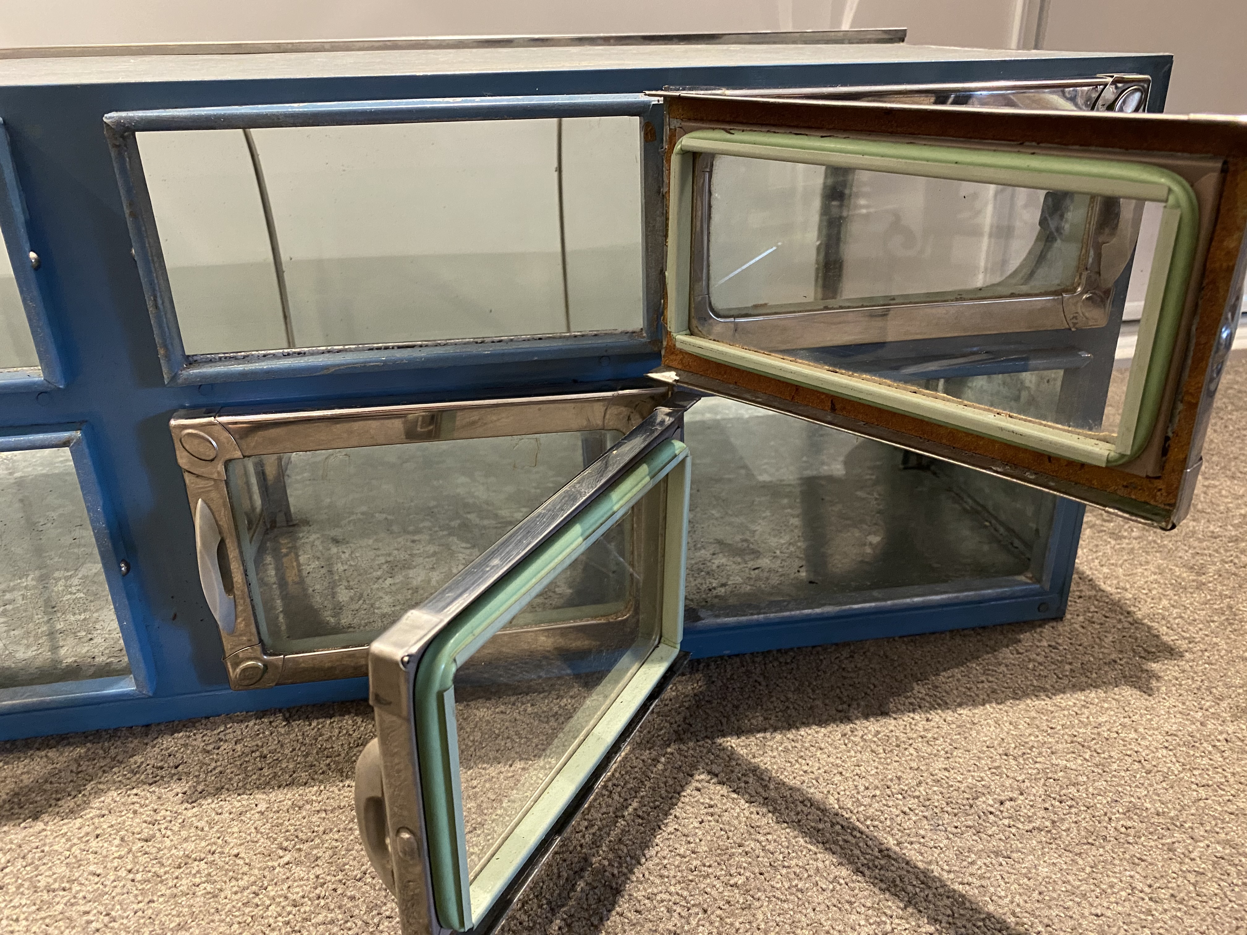 A little bit of social history and today a unique addition to a commercial or home interior. Countless new uses including using it reversed, as a cabinet for curiosities or in your kitchen to store grains and cereals. Would be great to fill with coffee beans in a cafe.