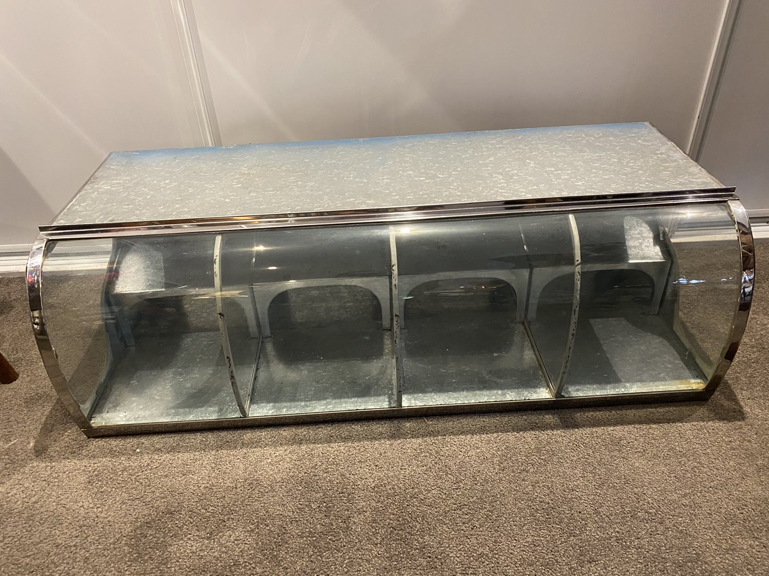 This one has 4 compartments, each with 2 access doors at the rear; one to refill the compartment and one for the scoop when dispensing.