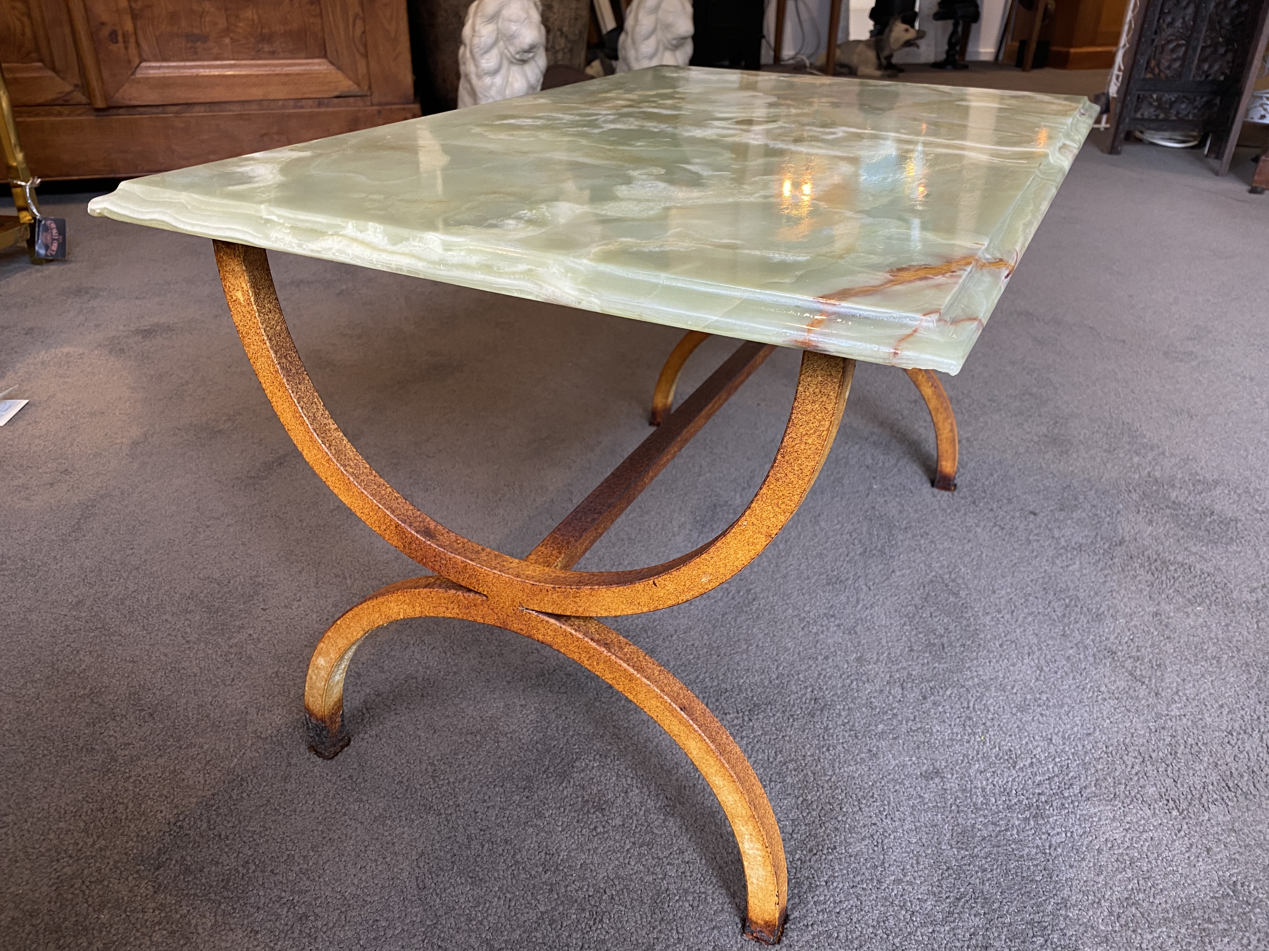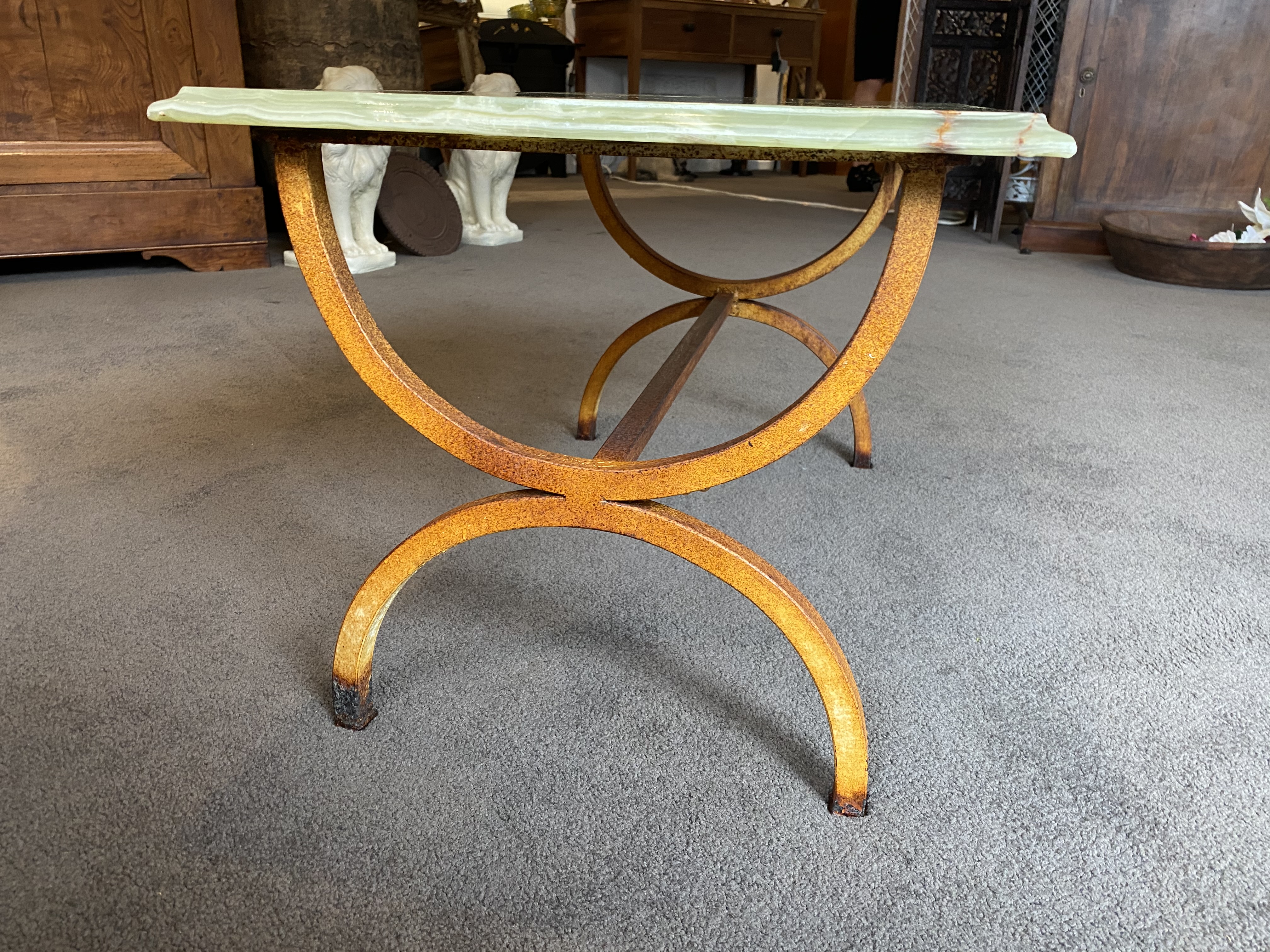 Having been left outside or in a damp environment the metal frame has a light orange rust, (much darker near the foot). The colouration is fabulous so we have sealed it with furniture wax but you could easily paint to your own taste or even have it chromed.