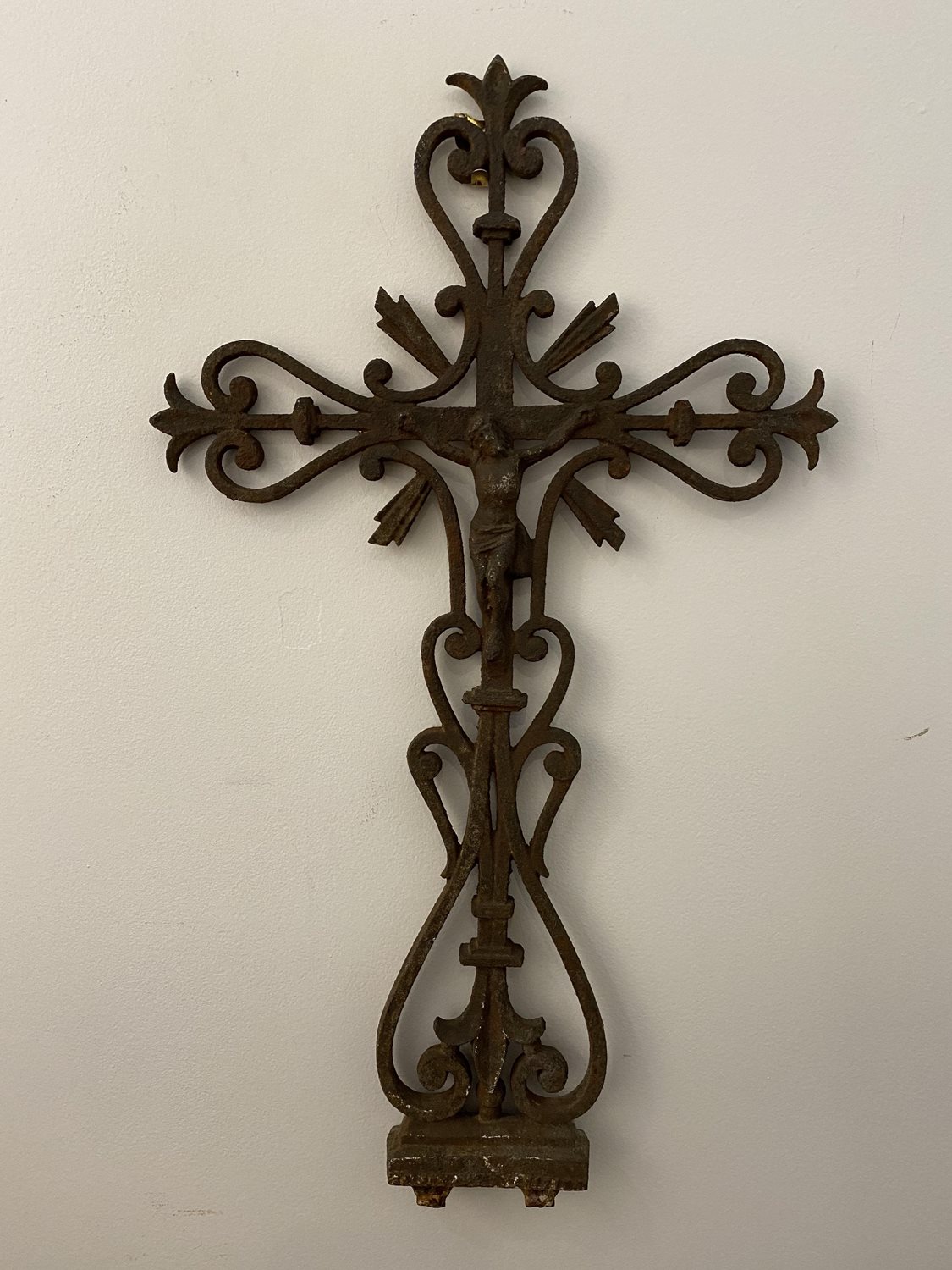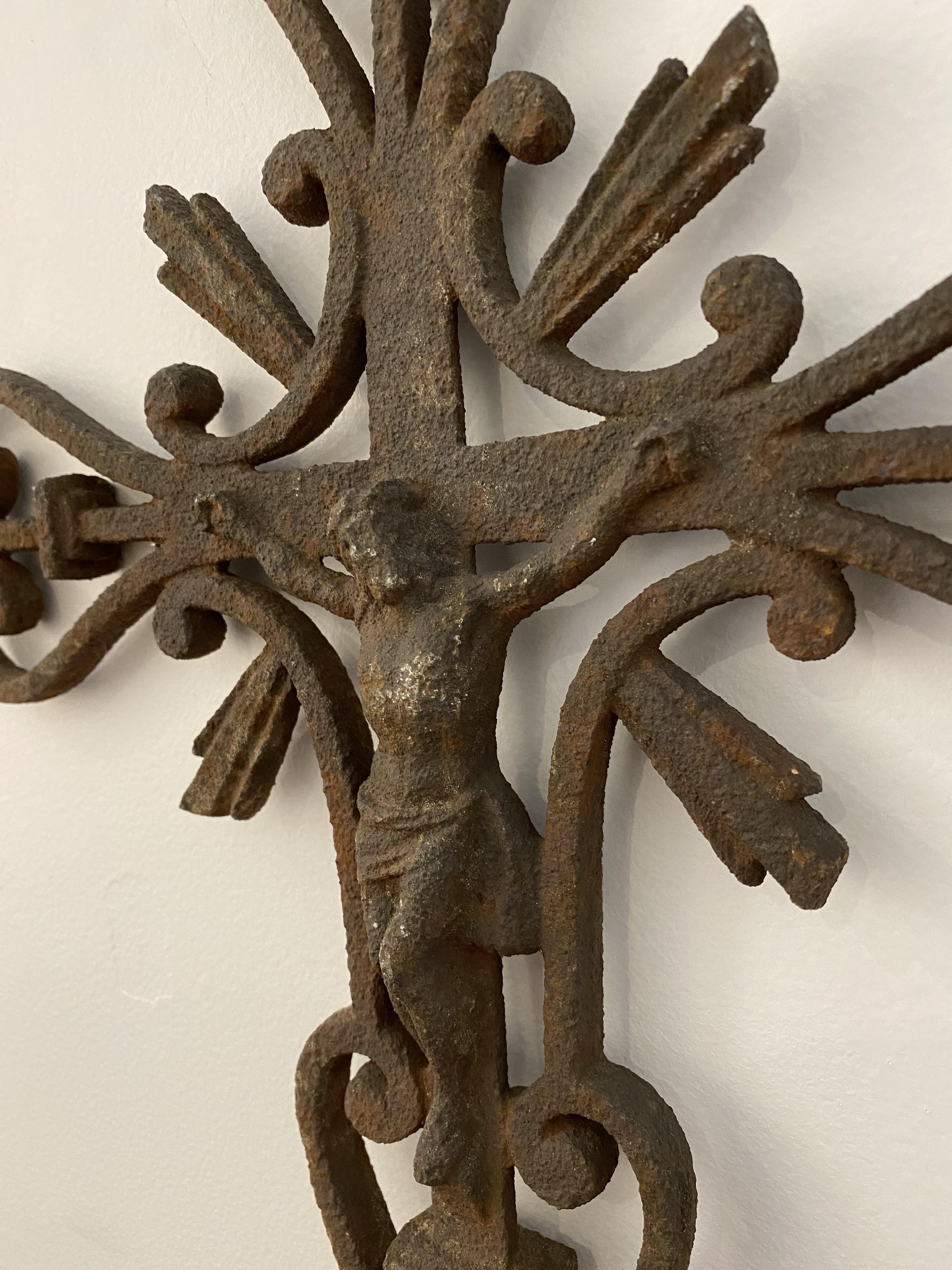 19th Century Wrought Iron French Crucifix.