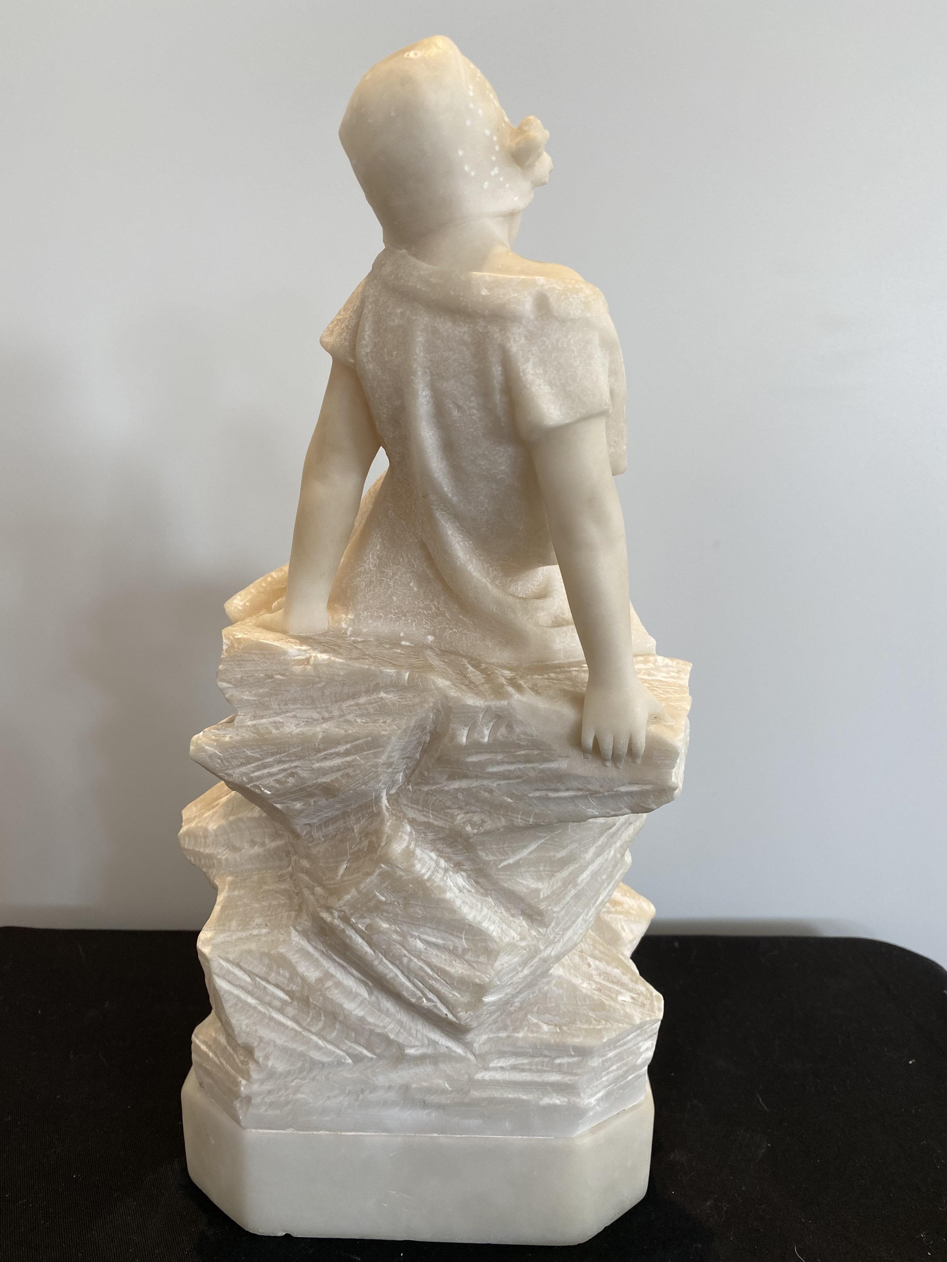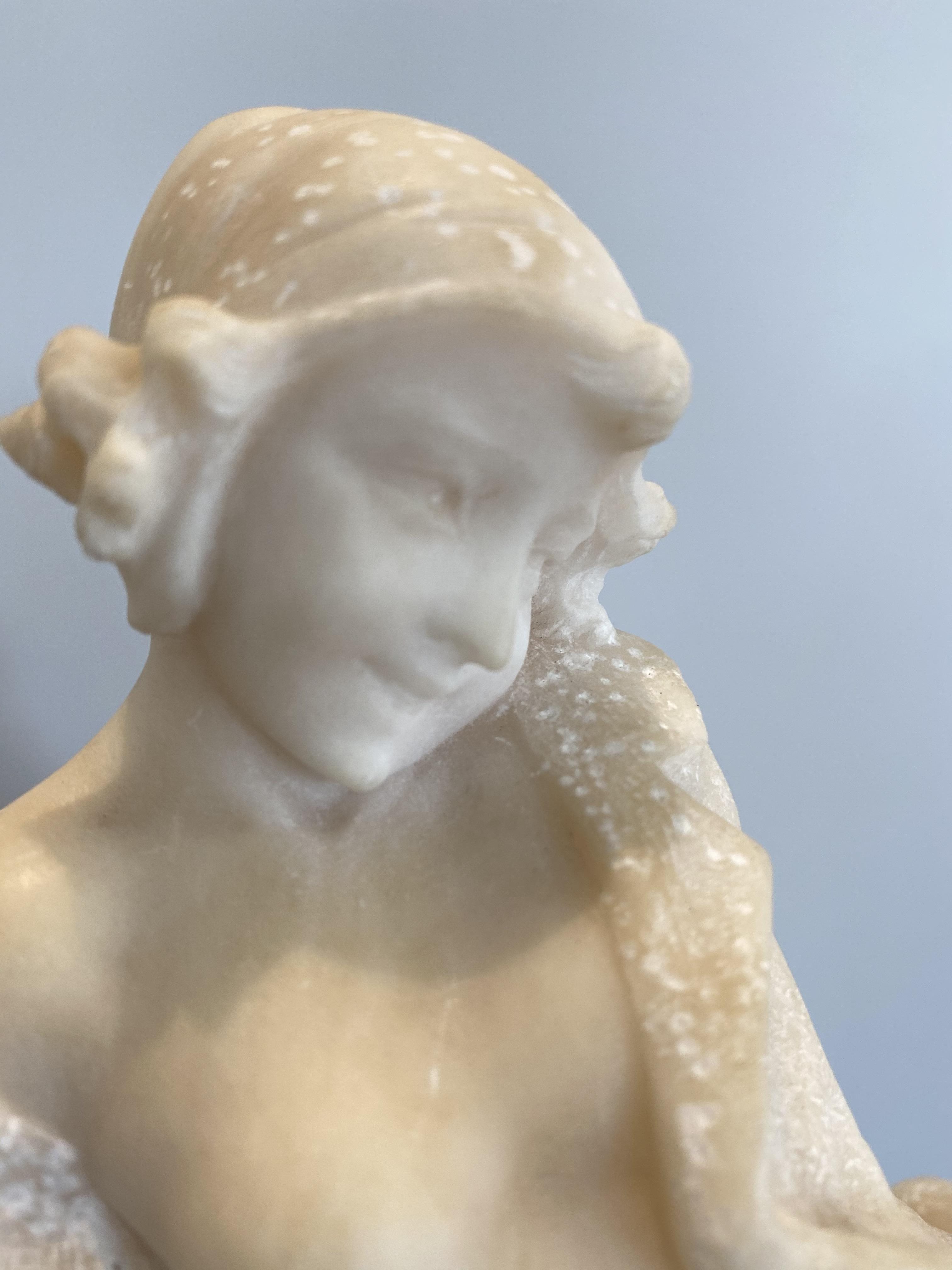 Early 20th century alabaster sculpture mounted on a marble plinth.