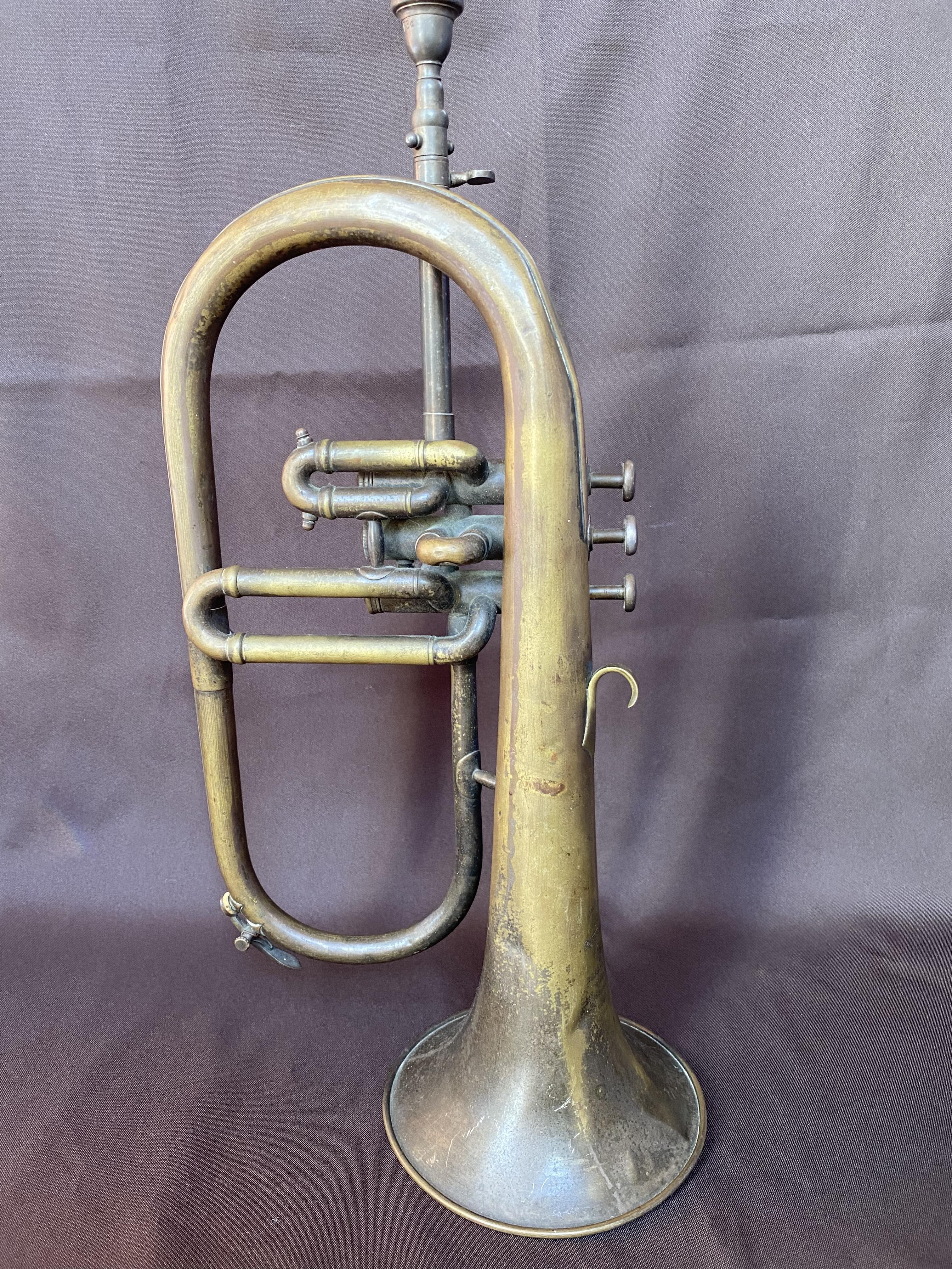 What a lovely old instrument with such a beautiful aged patina. This is a genuine Besson with serial number 106.379 showing it was manufactured in London between 1917 and 1921.