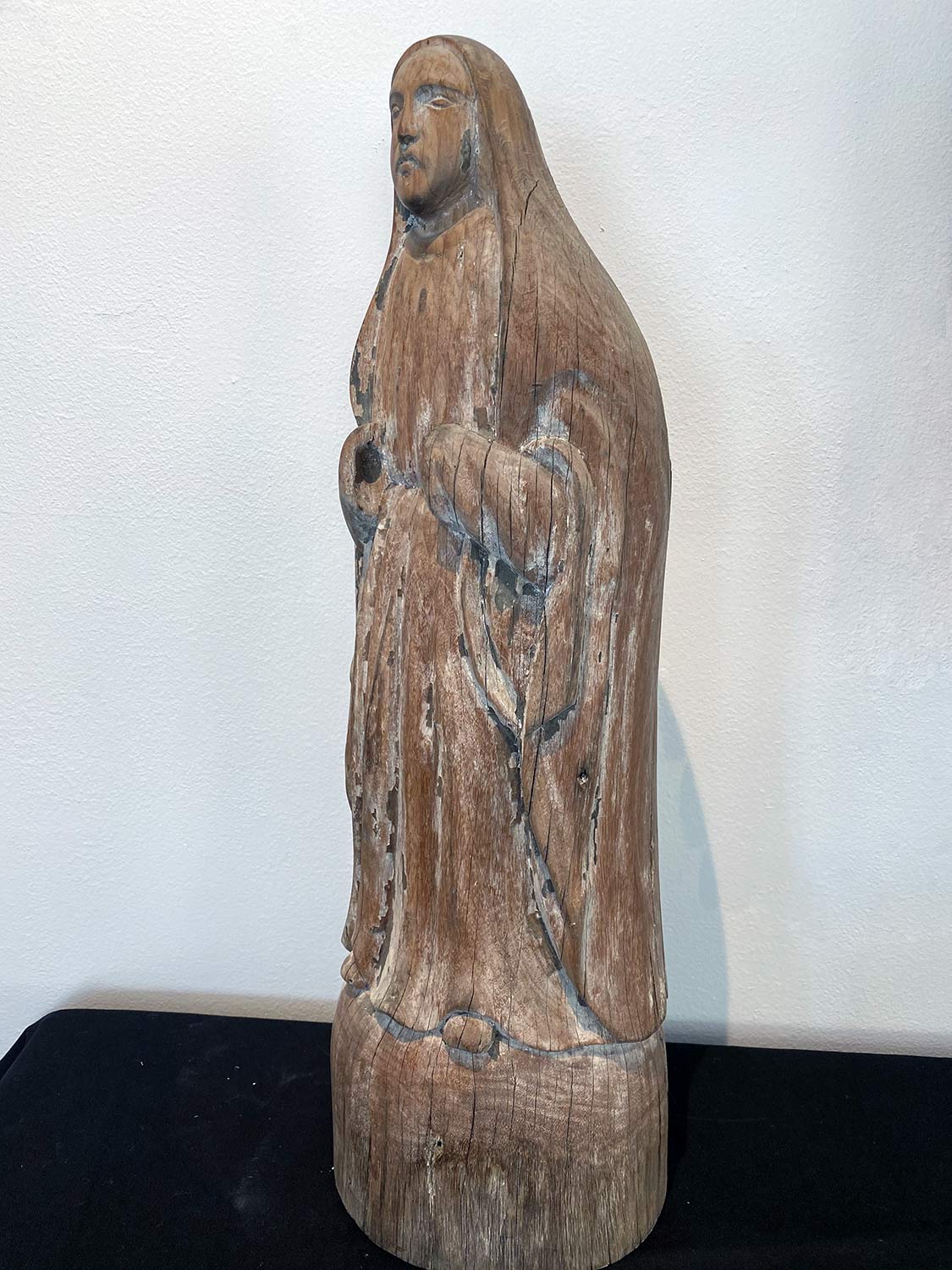 Although the hands are missing and the paint almost all gone, the figure remains an object of devotion and affection.