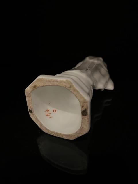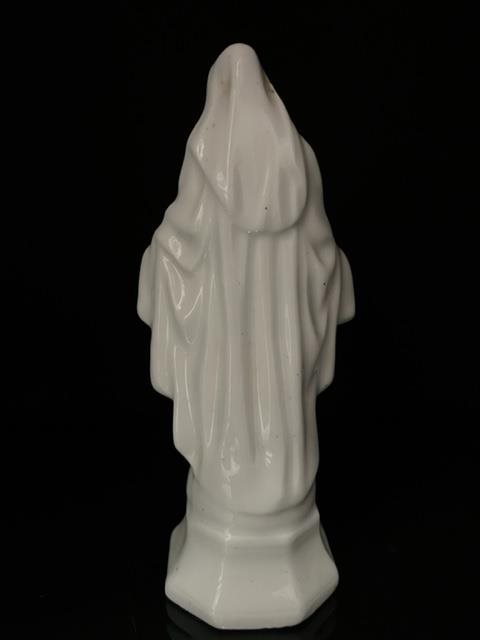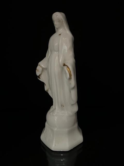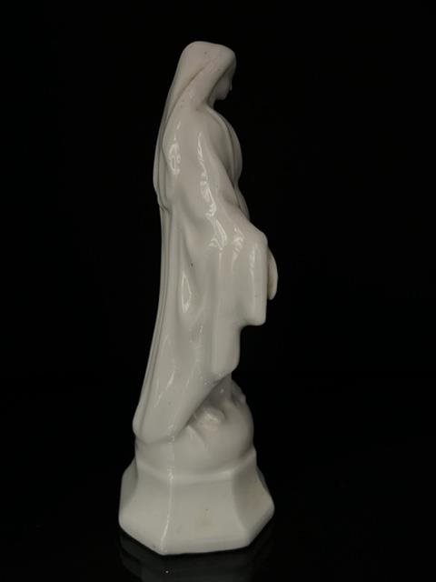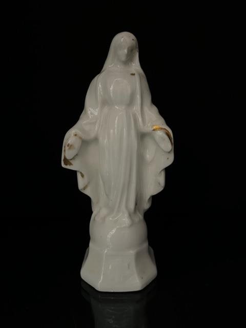 White porcelain figurine of the Virgin Mary with traces of gilding.
