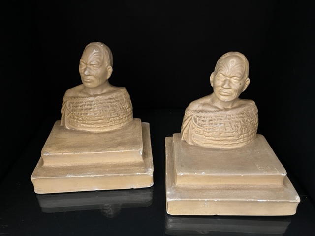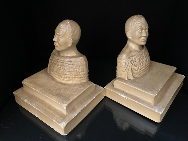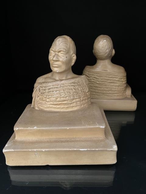 Pair of Plaster Maori Chief bookends.