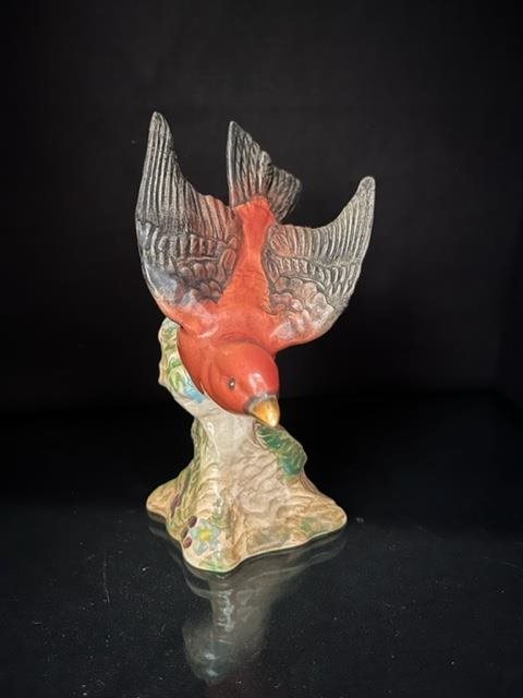 Vintage Beswick figurine of a swooping red Tanager Bird.