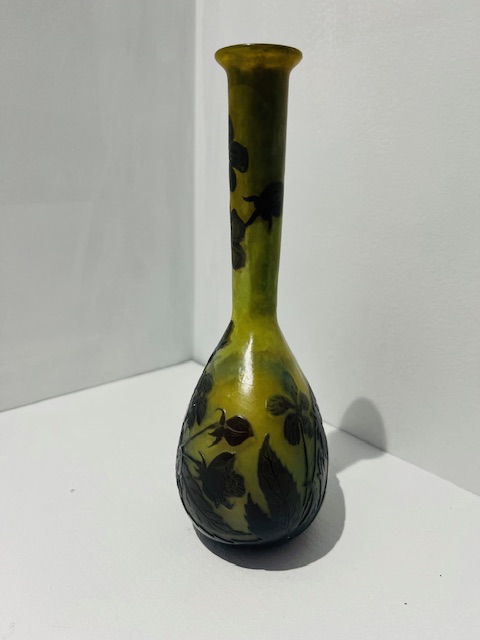 This original Galle Vase is in an oraganic green with layering of green/brown foliage.