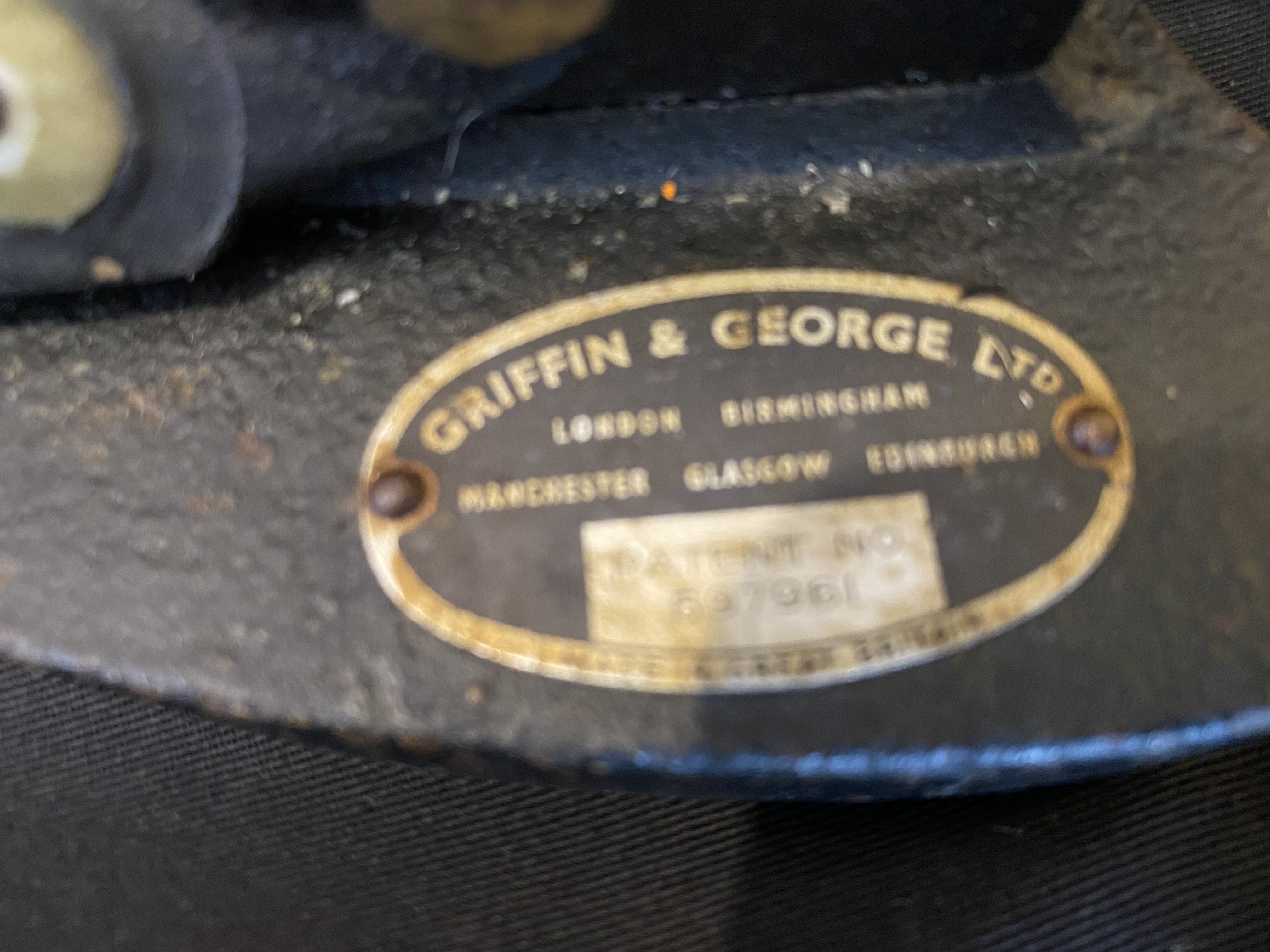 Plaque reads: Griffin and George Ltd, London, Birmigham, Manchester, Glasgow, Edinburgh. Patent number, 697961.