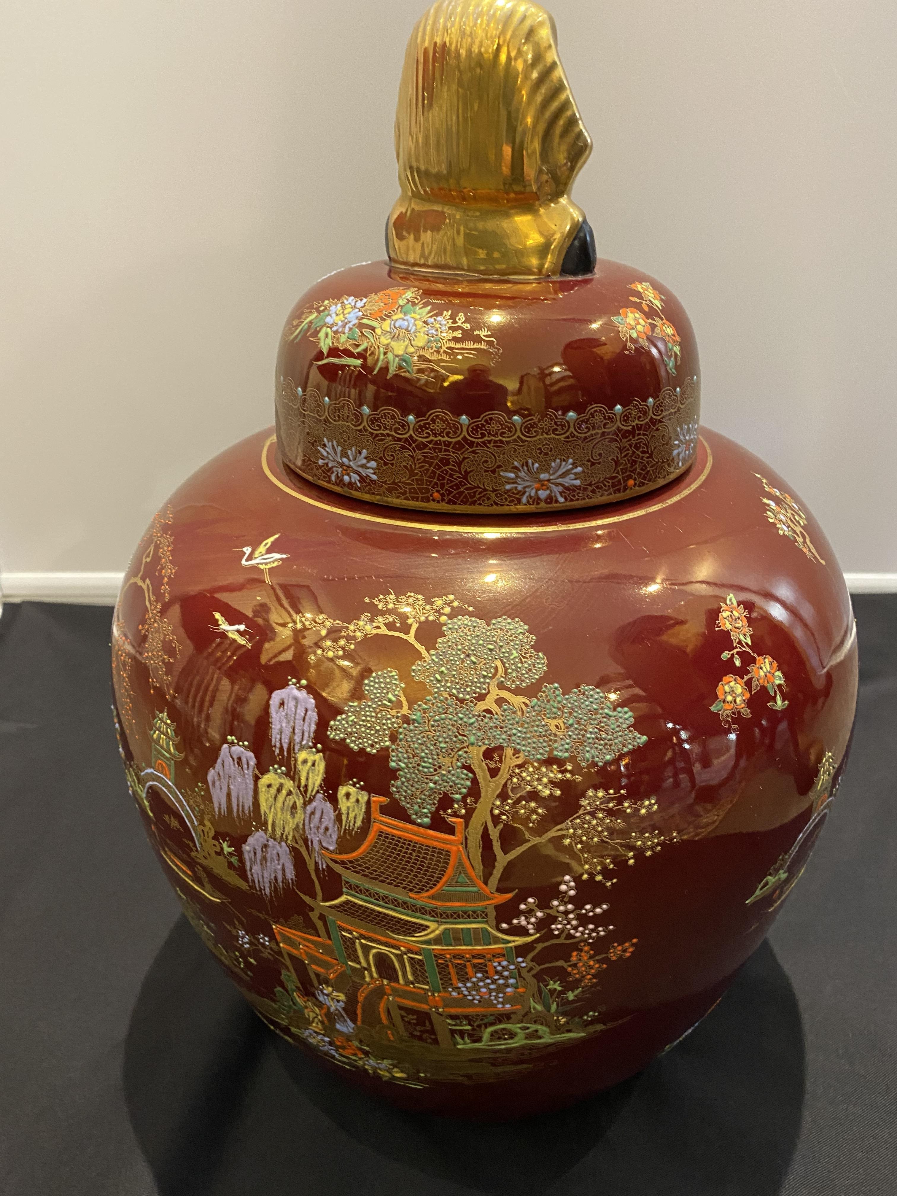 Large Ginger Jar by Carlton Ware with the Mikado Pattern but topped with the Tutankhamun Finial.