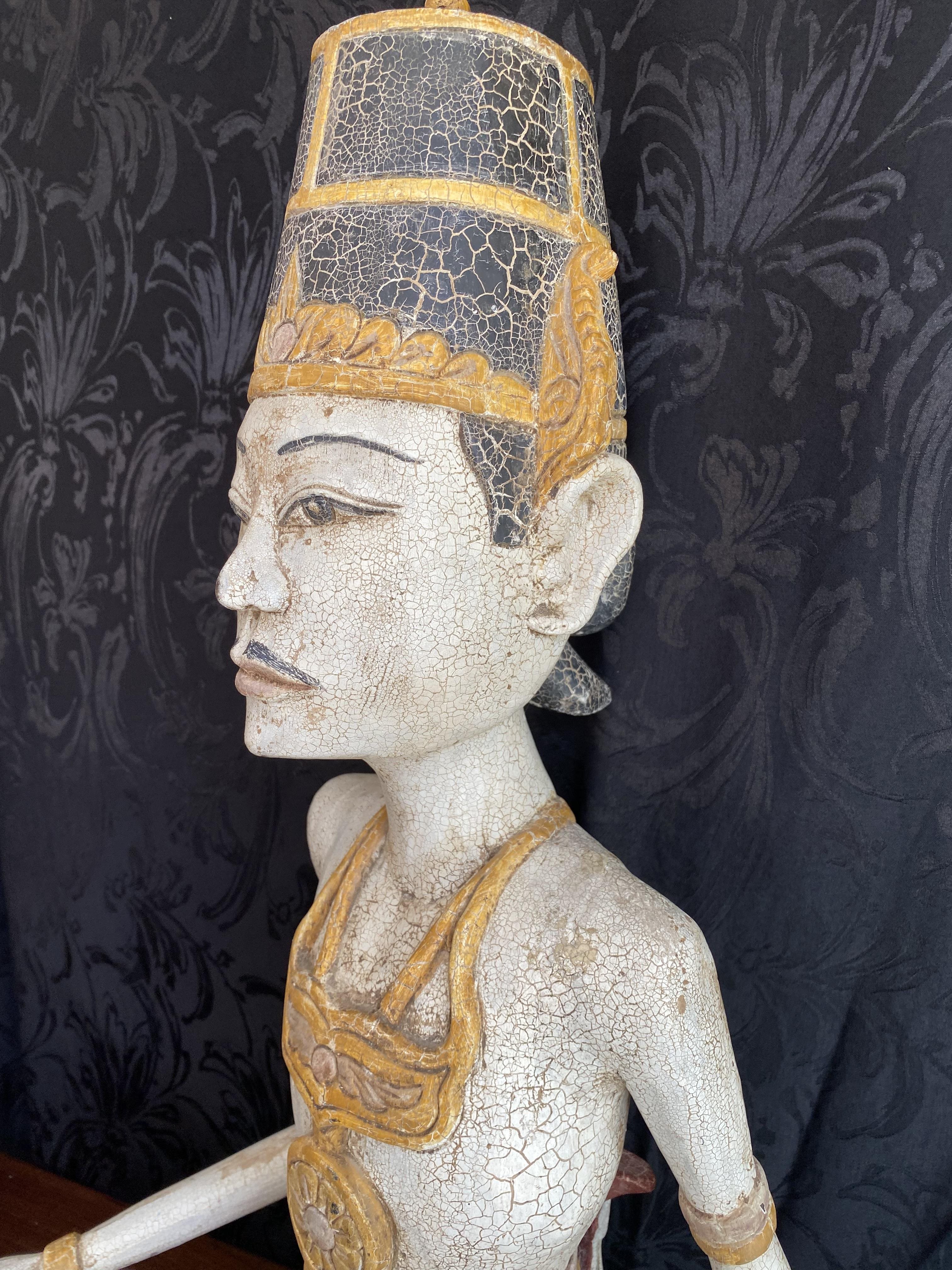 A pair of large seated Javanese bride and groom figures, beautifully carved and decorated. Lovely crazing to the paint due to the age of the pieces.