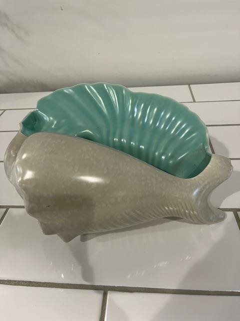 Spectacular Large Poole Pottery Ceramic Shell in Surf Green. Wonderfully sculptured with pattinated light coloured exterior.