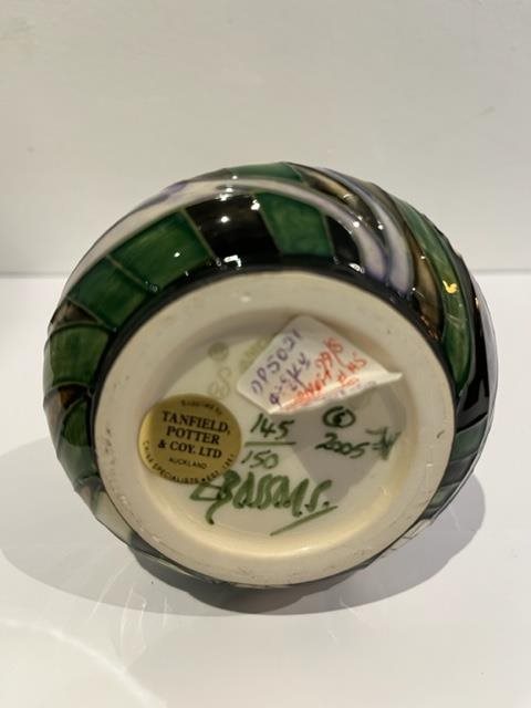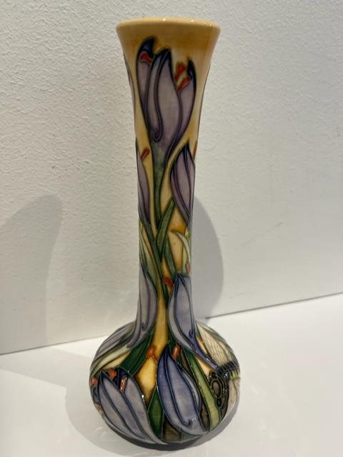 In a Tall baluster shape, this Moorcroft Vase is in the "Baron Ferdinand" pattern designed by Emma Bossons, 2005.