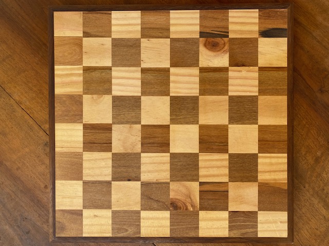 Hand crafted wooden chess board. Chess pieces are made of solid resin and are very well modelled.