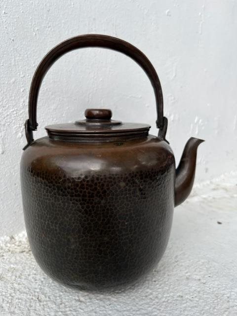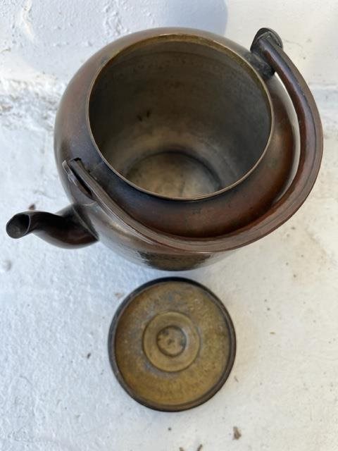 This old teapot is probably Asian has a beautiful pattina and is pattinated with the hammer blows that shaped it.