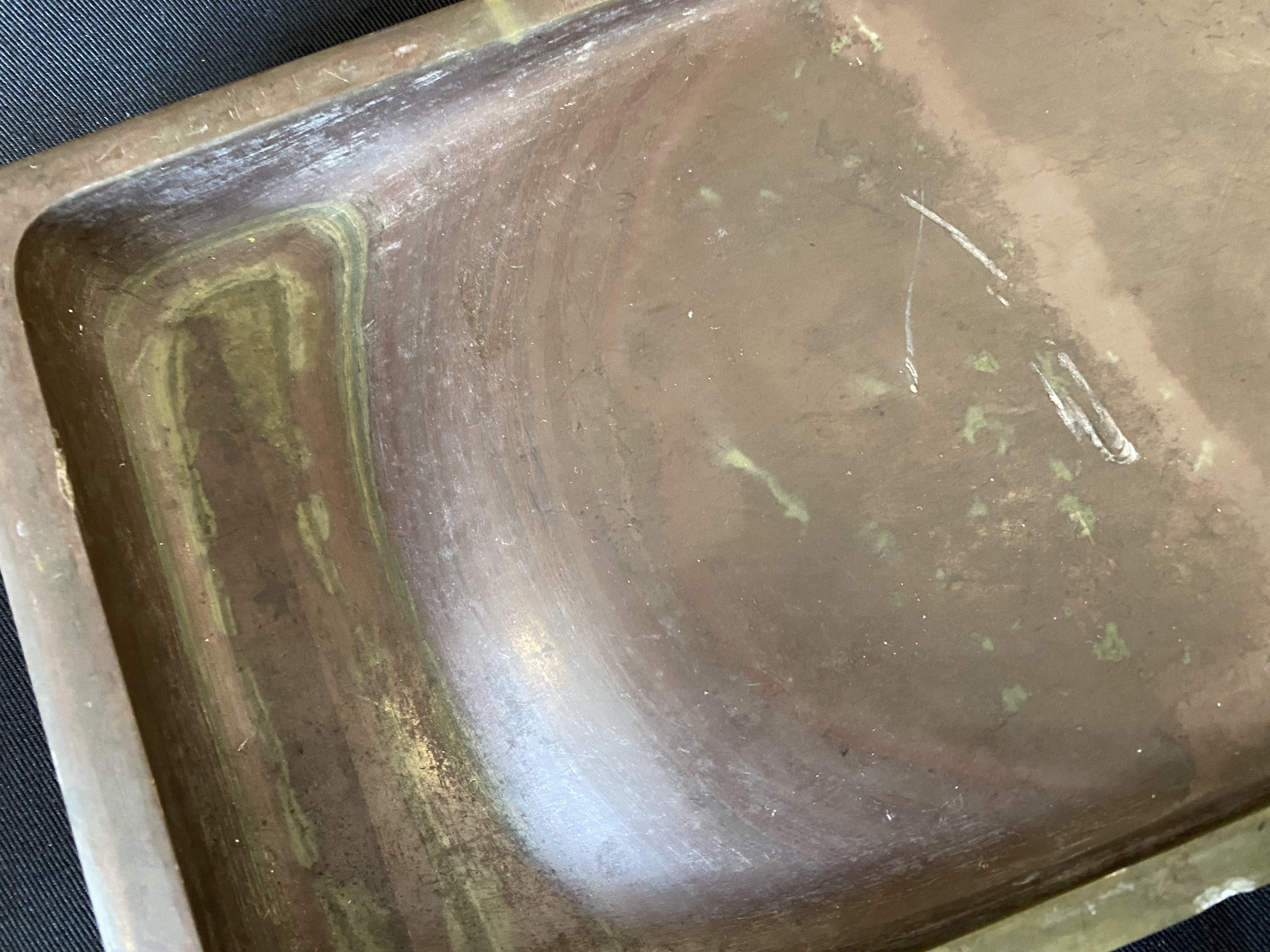 This is a beautiful object that has been lovingly crafted from stone. It has a lovely patina and depth of colour in browns and greens. Very tactile as well. 140mm x 270mm