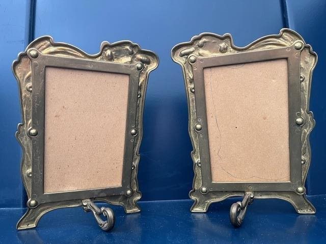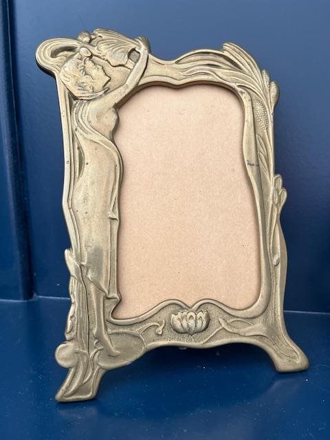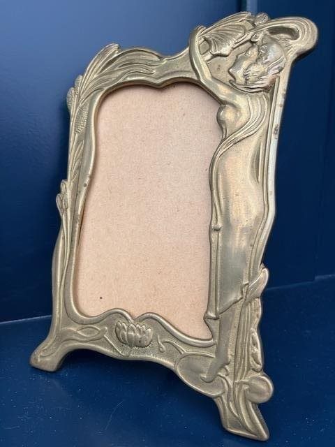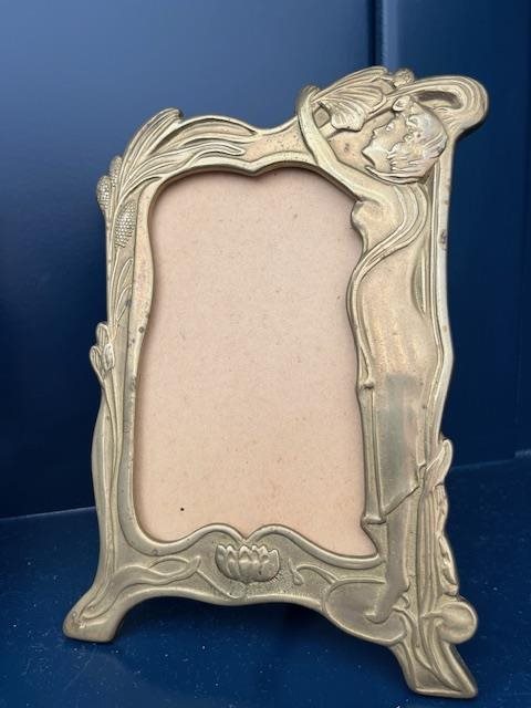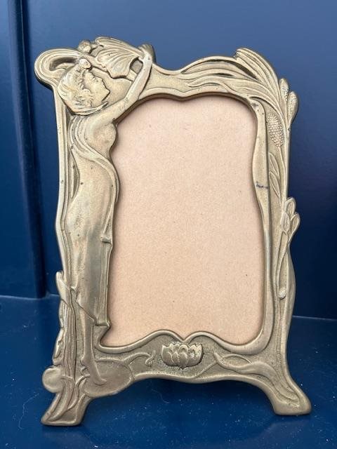 Lovely pair of photo frames in the Art Nouveau Style with draped foliage and a curvacious woman.