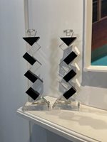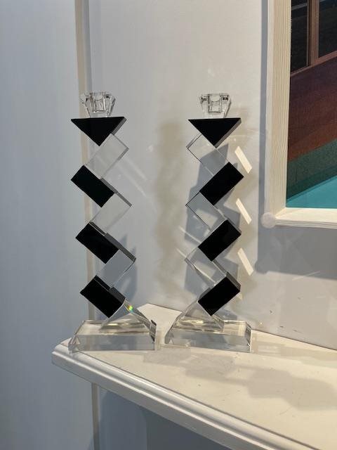 Badash Crystal Candlesticks in the "Angela" design. Black accents on a geometric, modernist form.