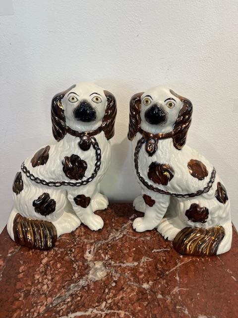 A lovely pair of matching antique Spaniels in very good condition.