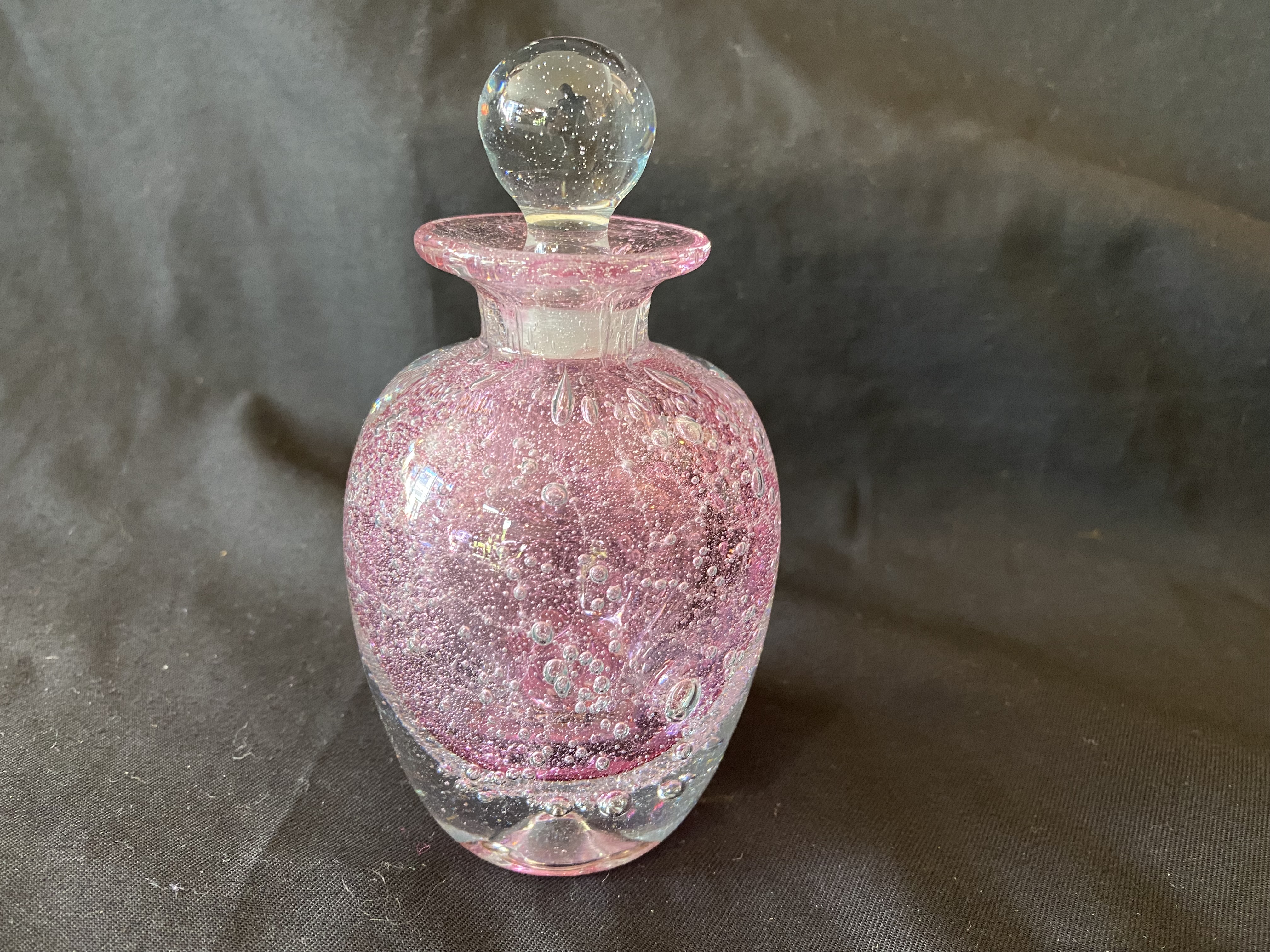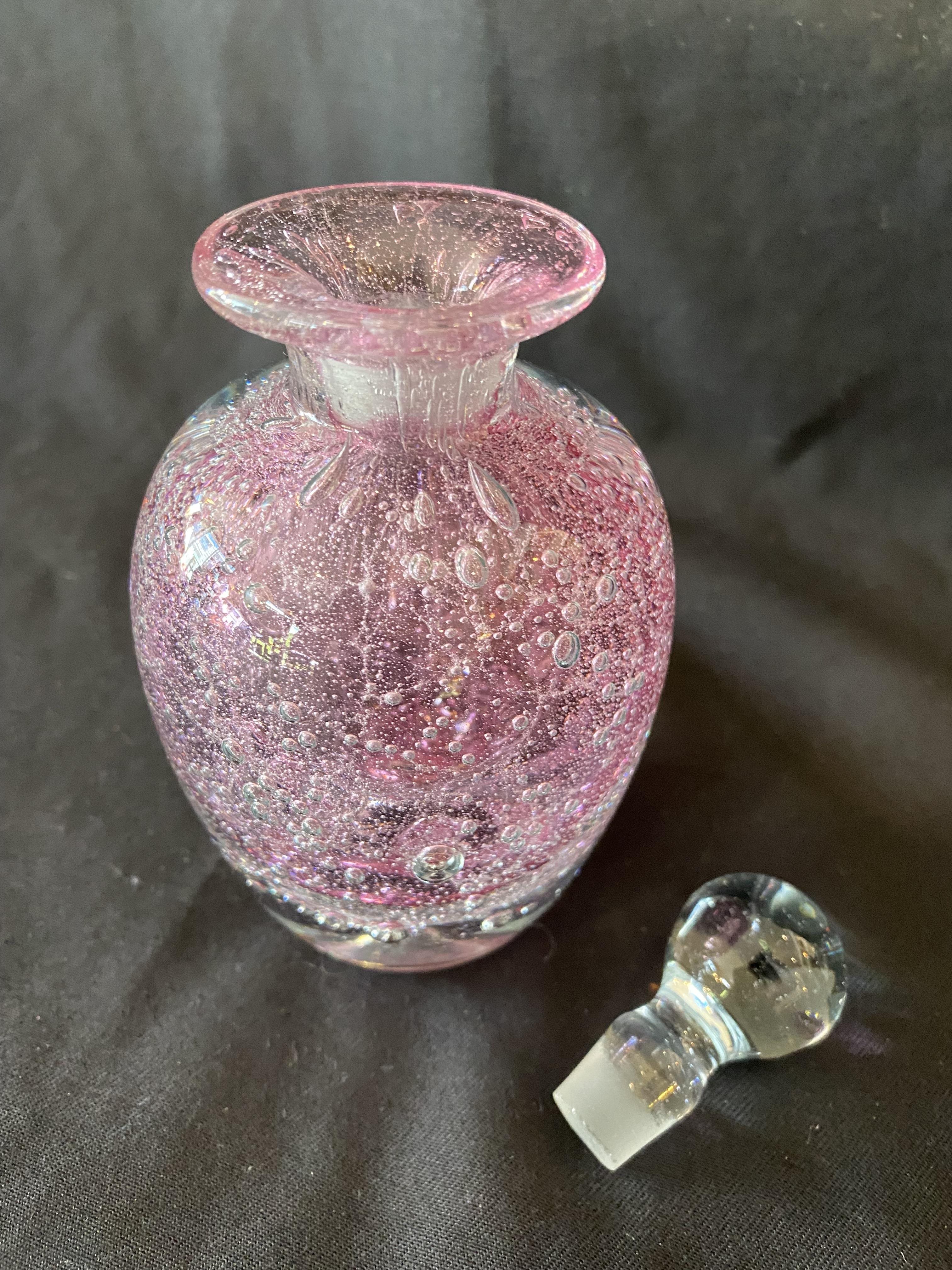 Beautiful little art glass bottle blown full of air bubbles.