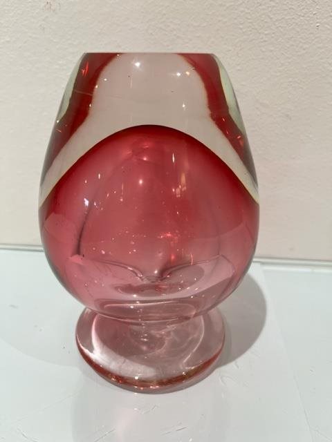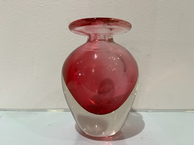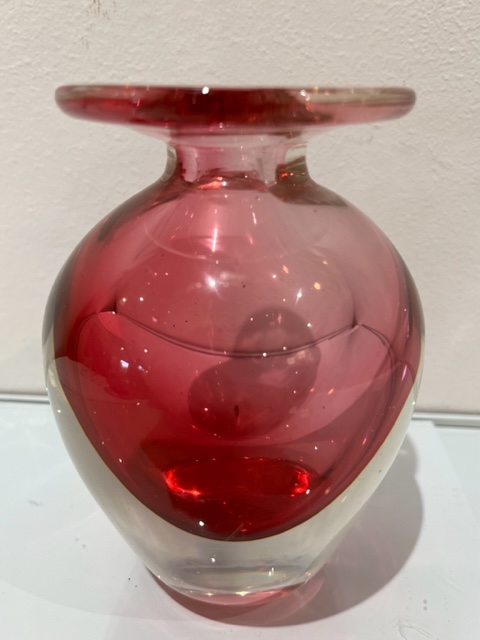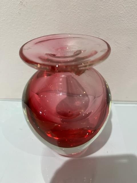 Beautiful hand blown glass vase with pink core.