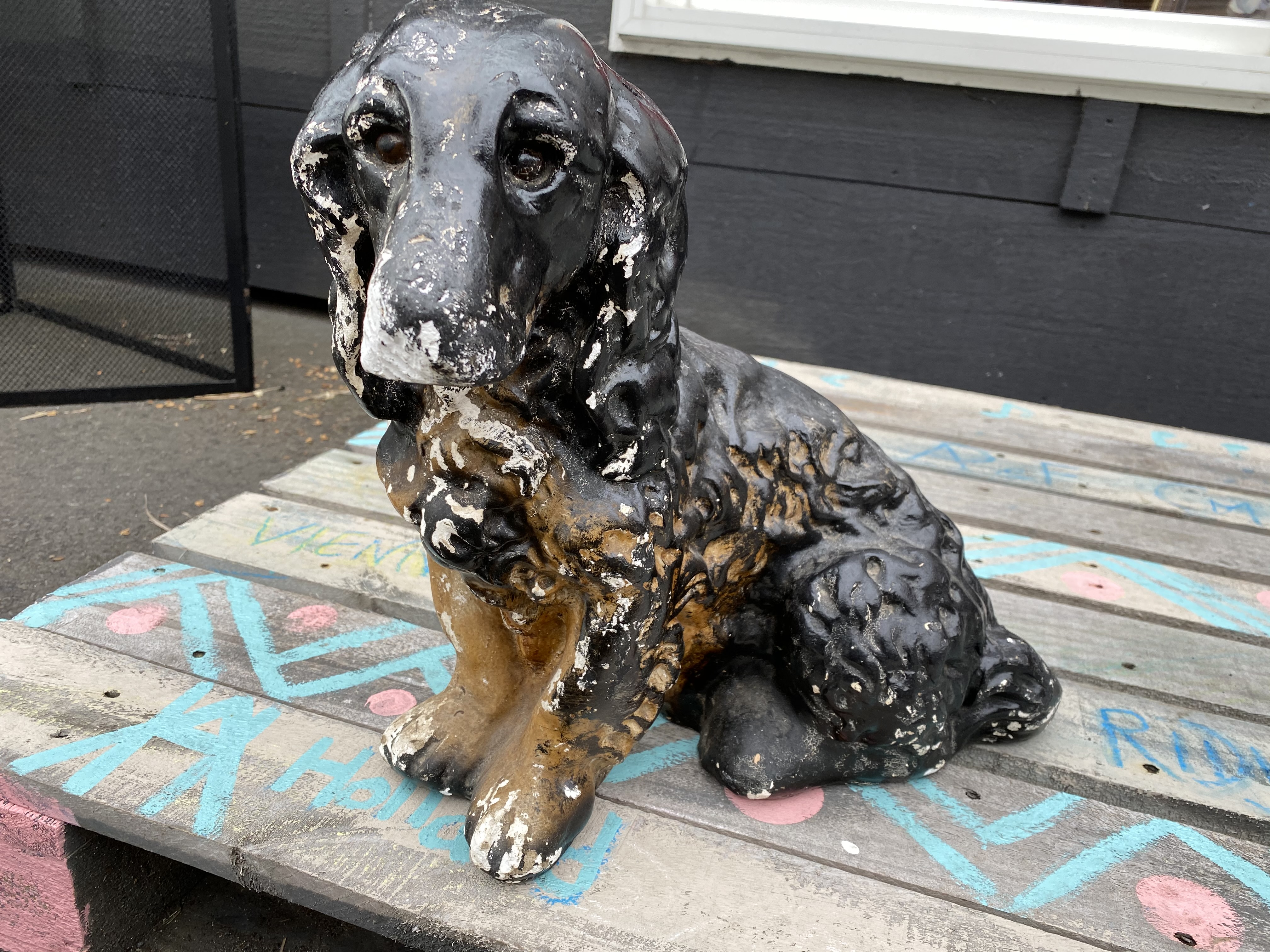 Lovely plaster Spaniel with superb pattination.