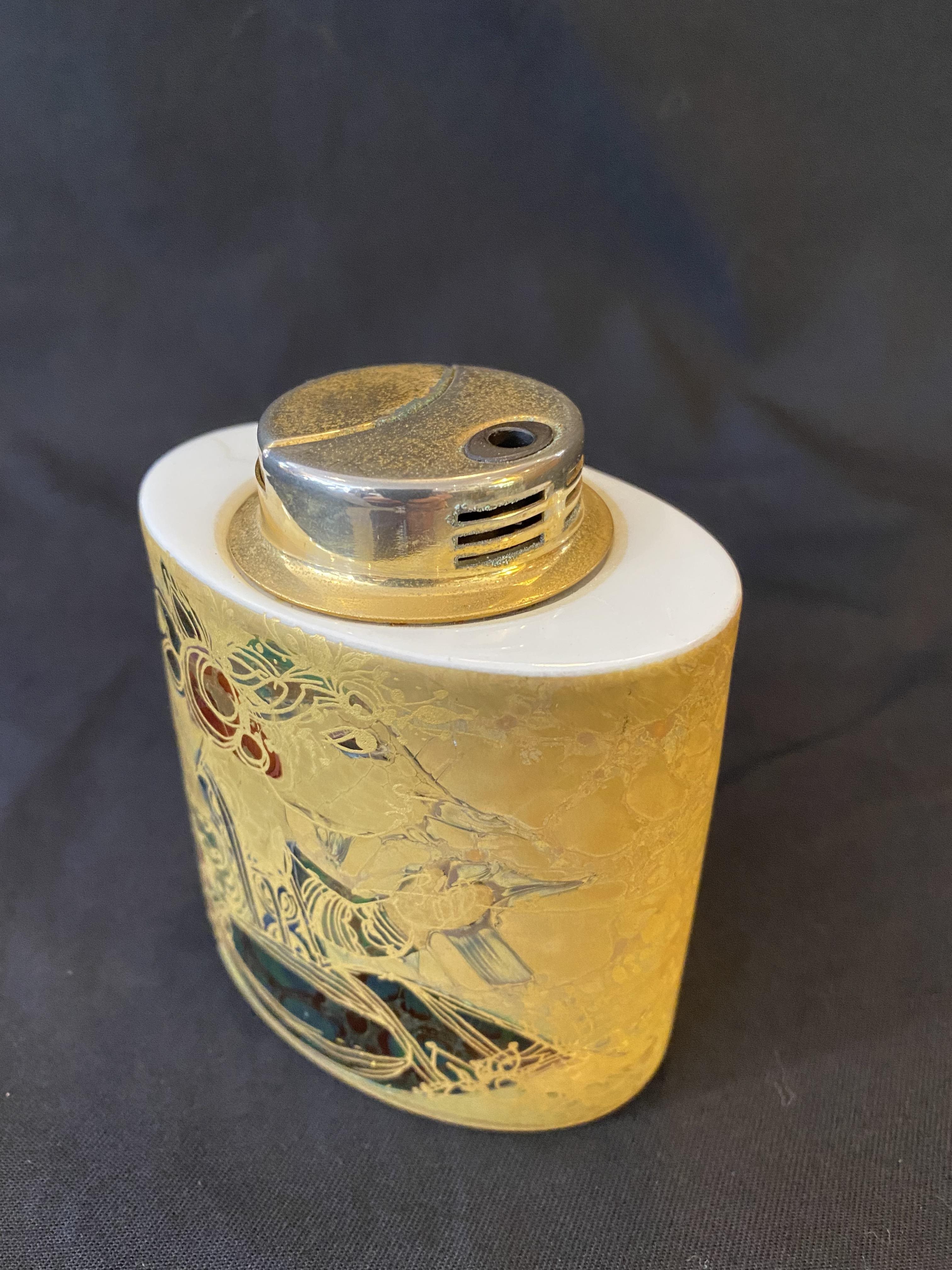 Decorative Porcelain 1970's table lighter. Some wear and needs some minor work to get it working.