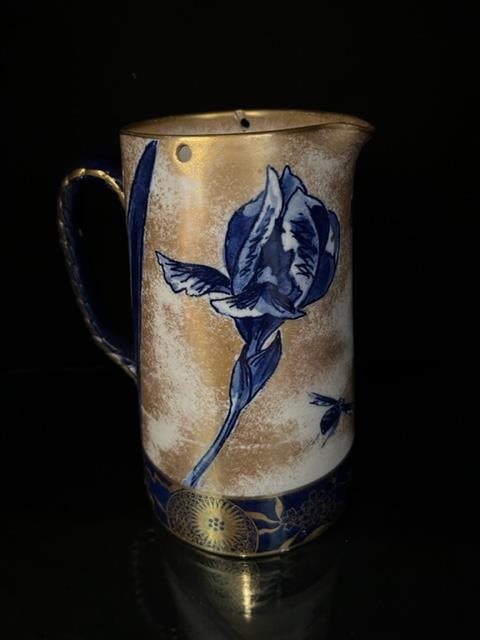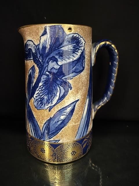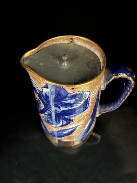 Early 20th century Gold & Blue Royal Doulton Jug with silver plated lid.