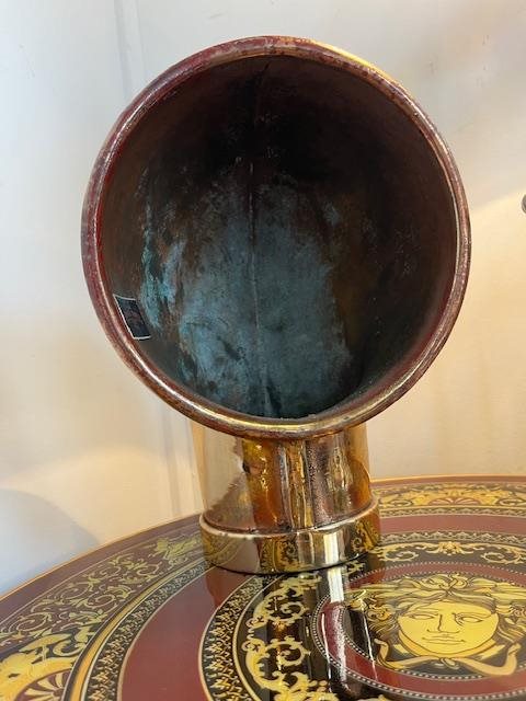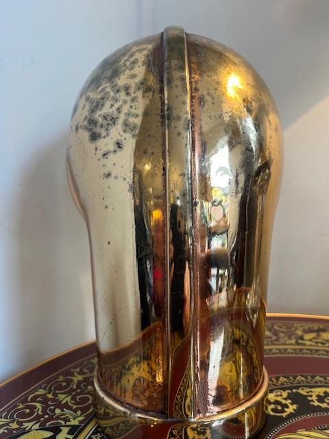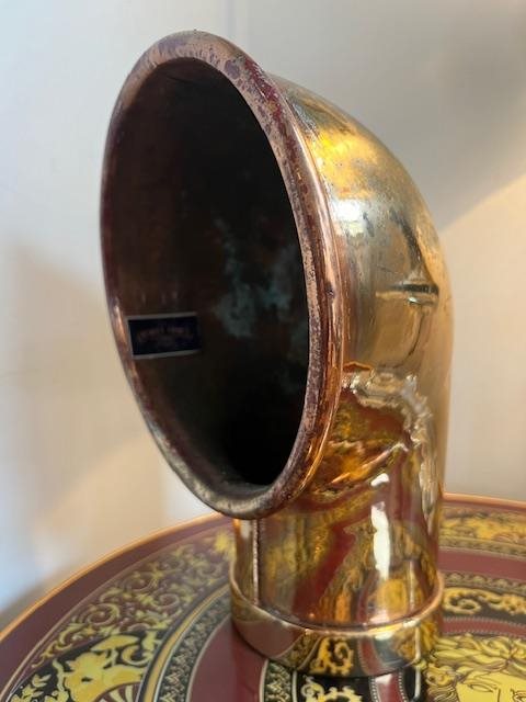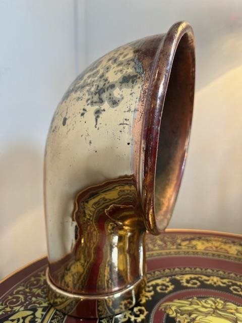 Genuine small ship's ventilation cowl. Made from a heavy alloy, (brass, bronze?), or copper. This would make a beautiful desk or decorative piece for any nautical nut, (or the man who has everything).